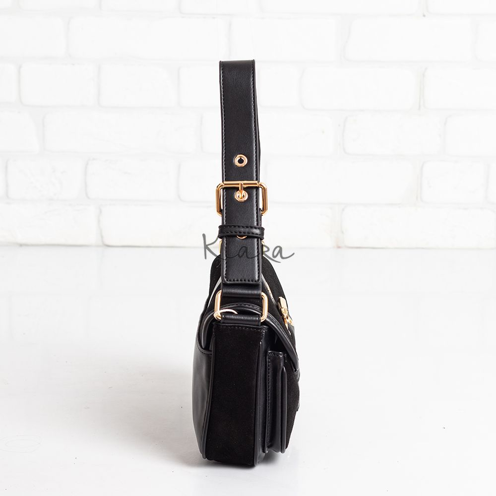 Дамска чанта с капак и магнитно закопчаване, изработена от естествен велур и кожа с: