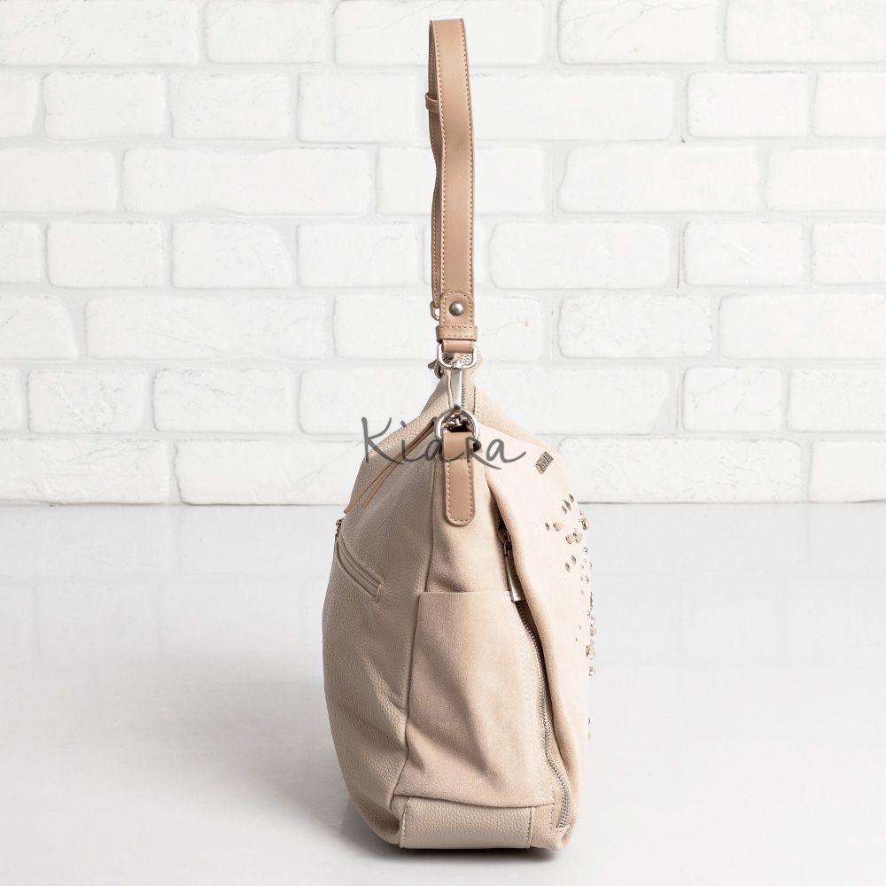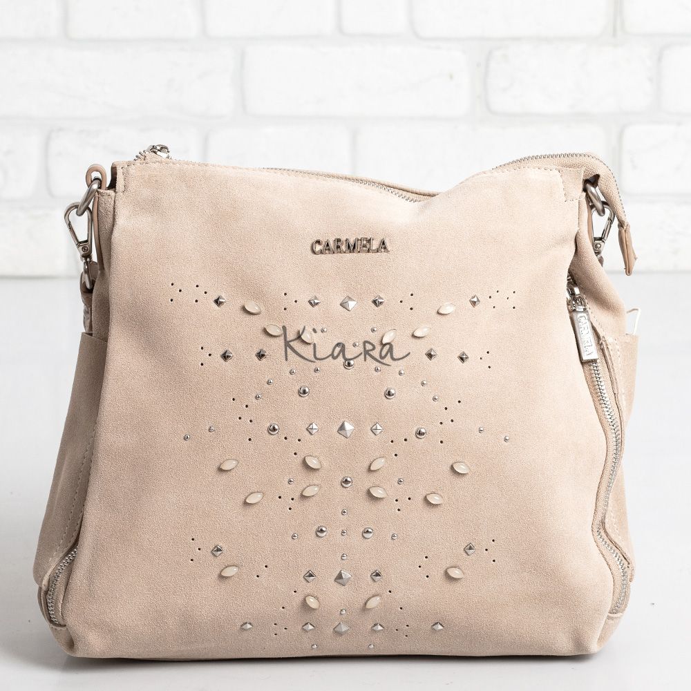 * Дамска чанта CARMELA изработена от естествен велур и кожа,декорирана с камъчета и капси