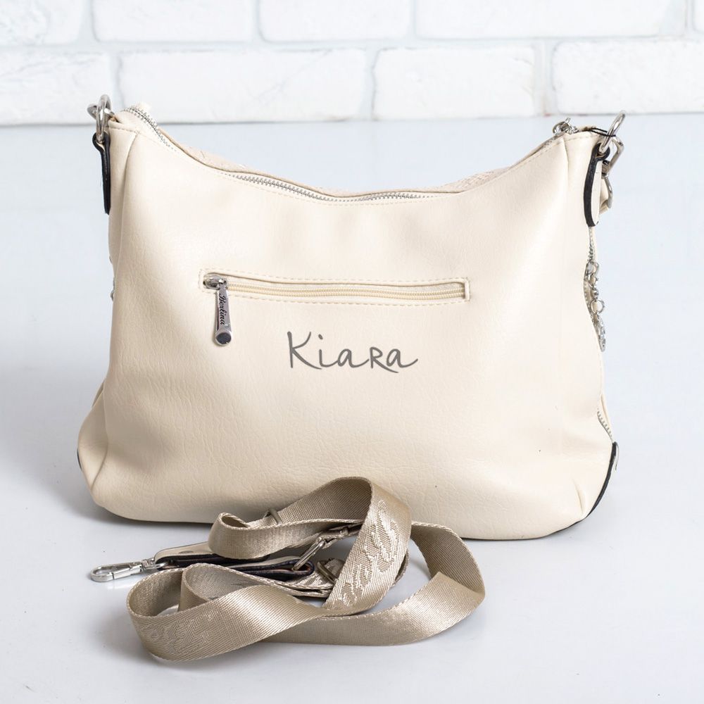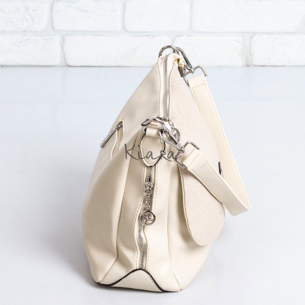Дамска чанта в бежово и лак