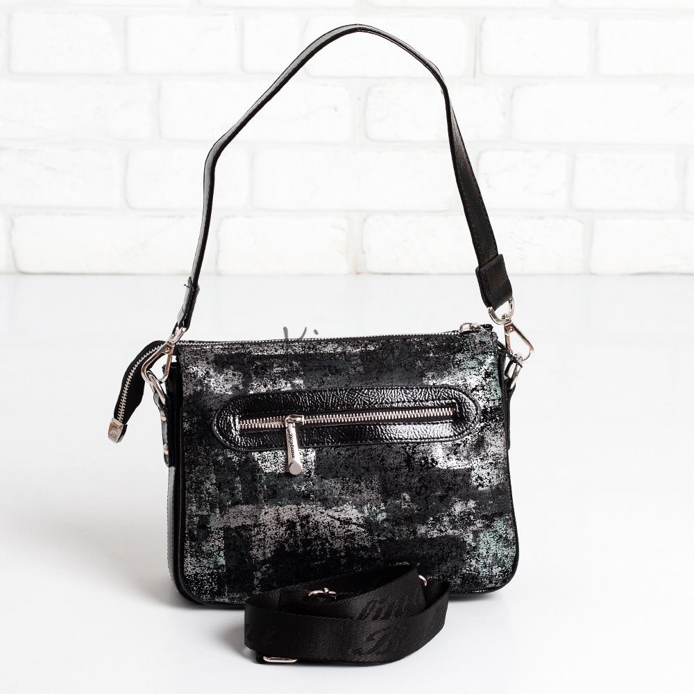 Дамска чанта в черно и сребристо
