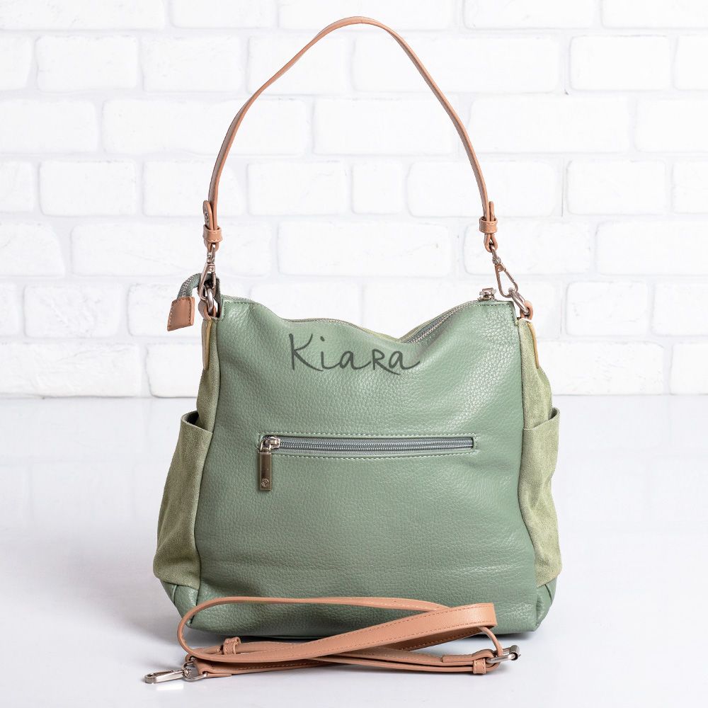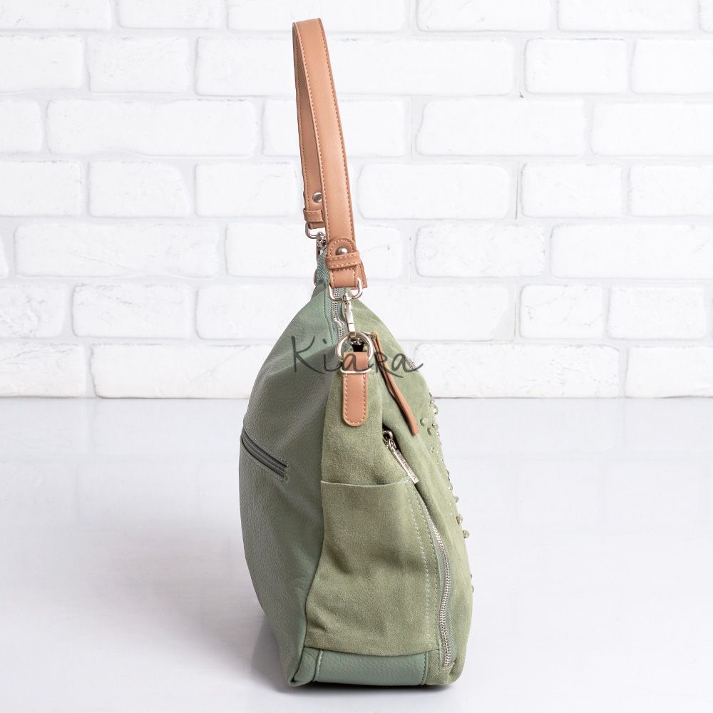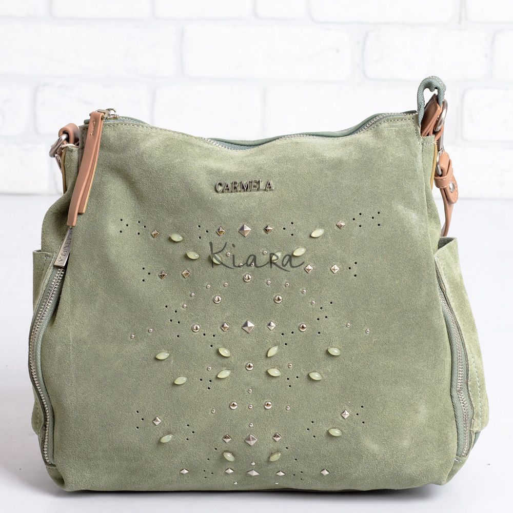 * Дамска чанта CARMELA изработена от естествен велур и кожа,декорирана с камъчета и капси