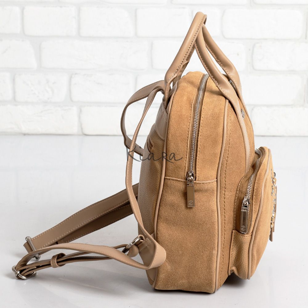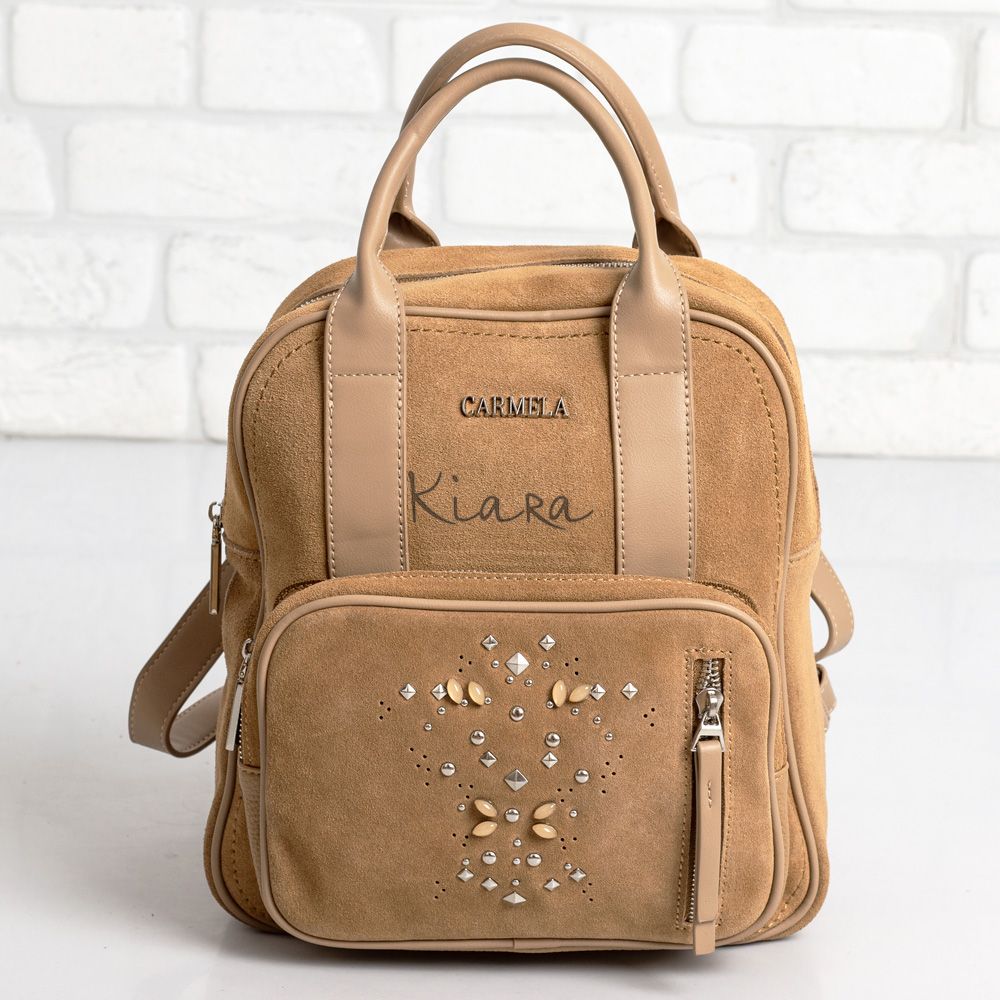 * Дамска раница CARMELA изработена от естествен велур и кожа