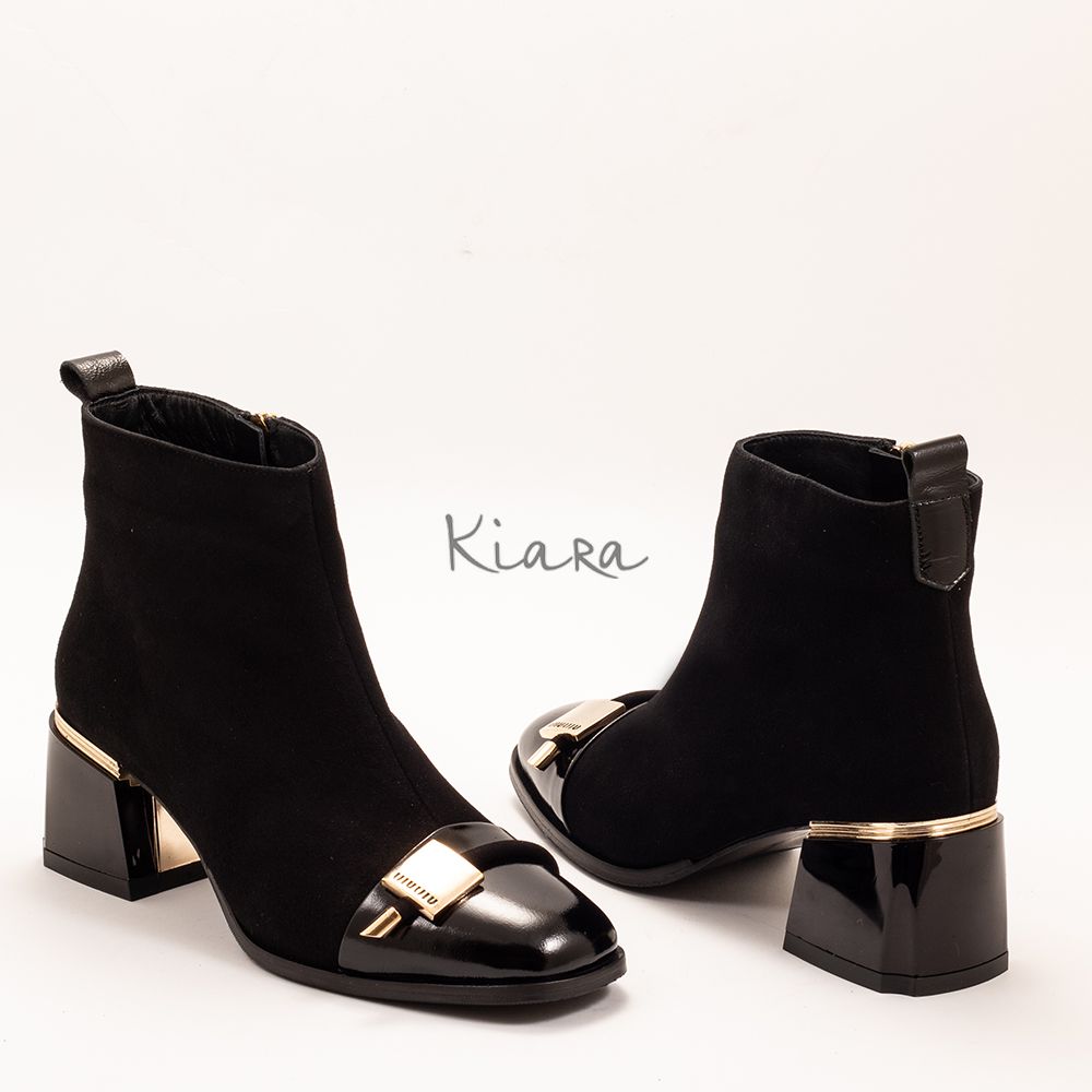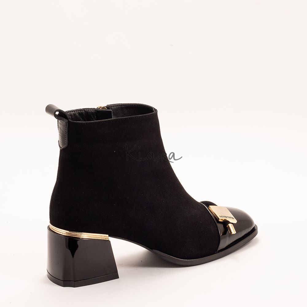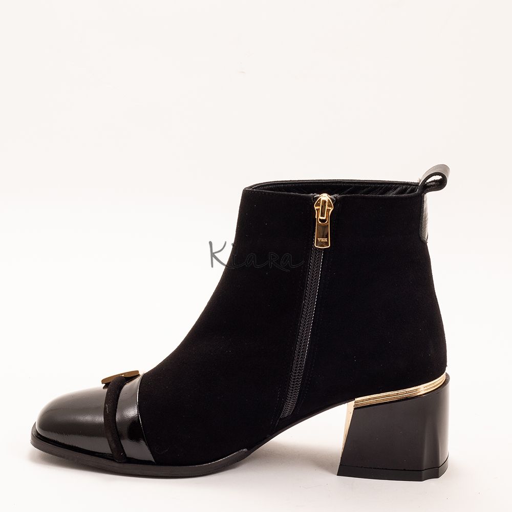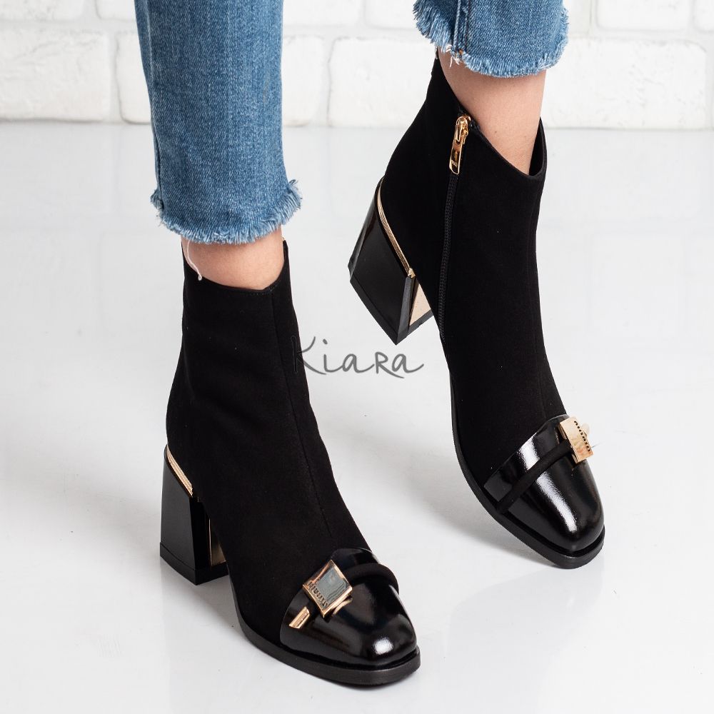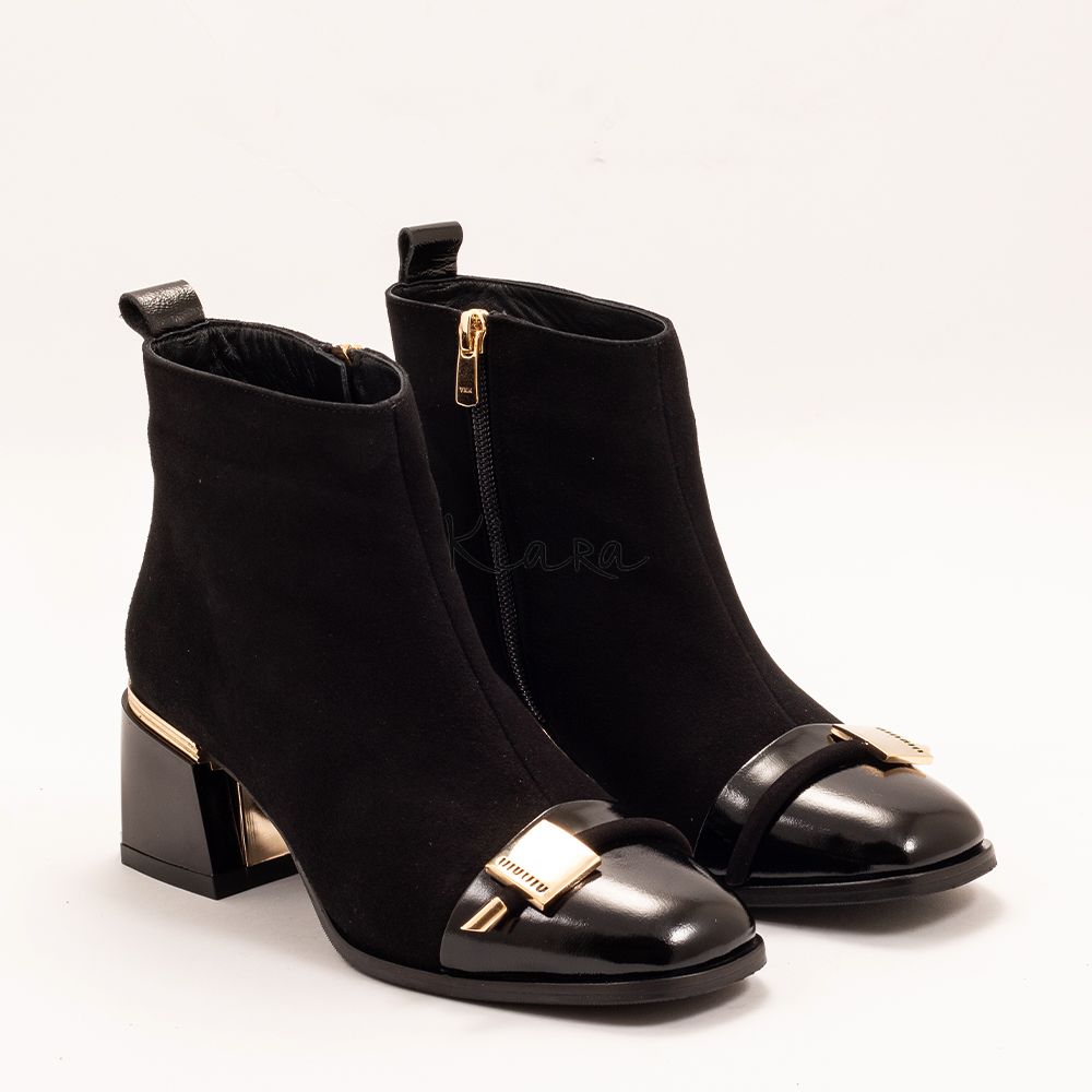 Стилни дамски боти на ток в черно, изработени от естествен лак и естествен набук!