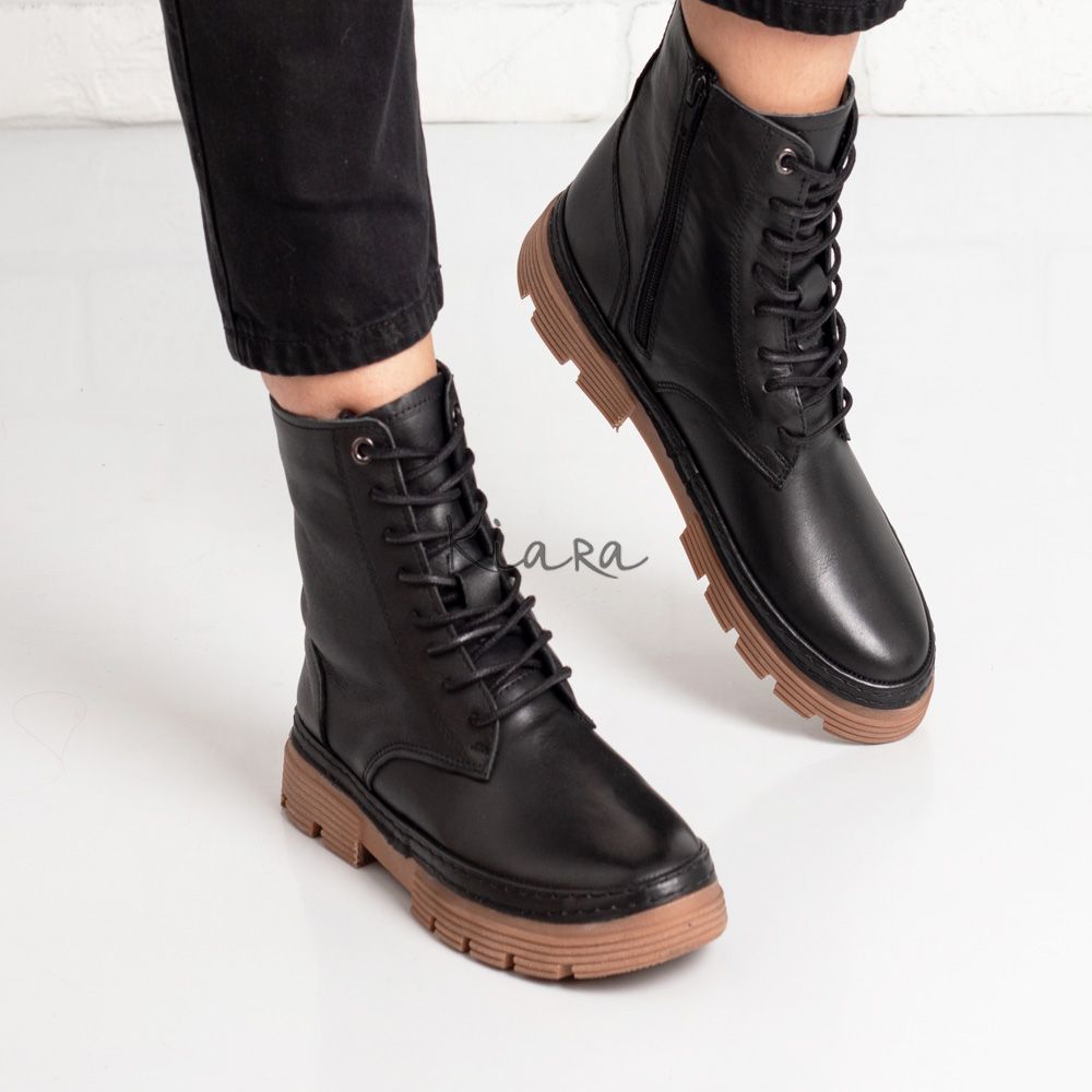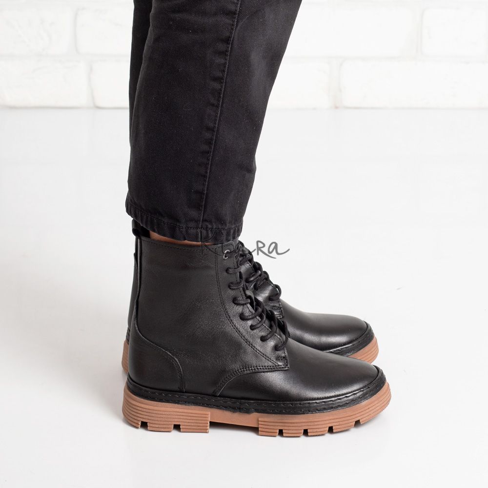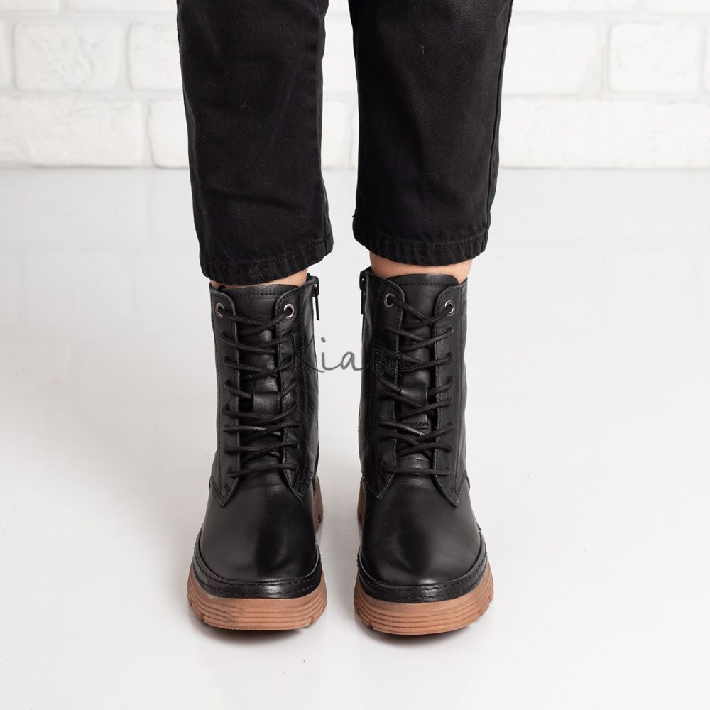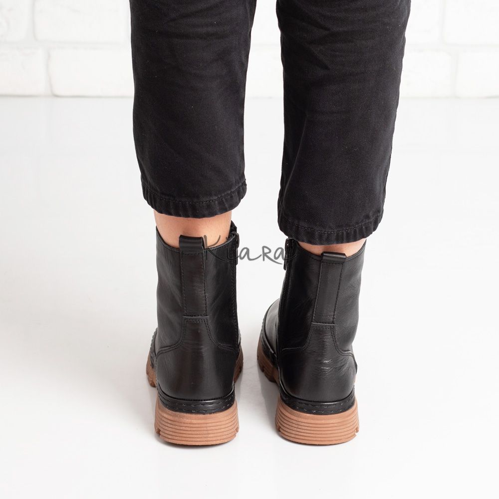 Комфортни дамски боти в черно с изчистен дизайн, изработени от естествена кожа.