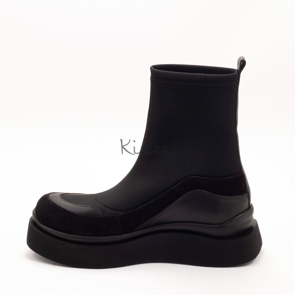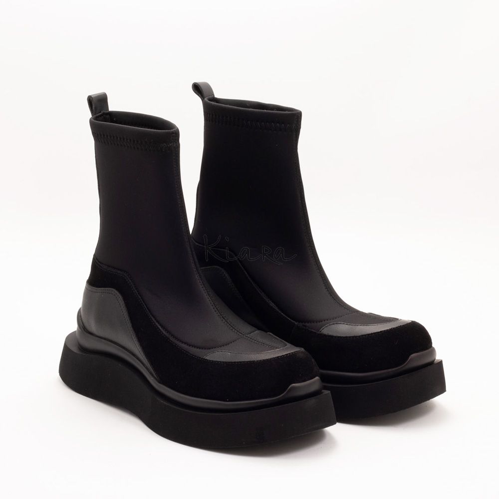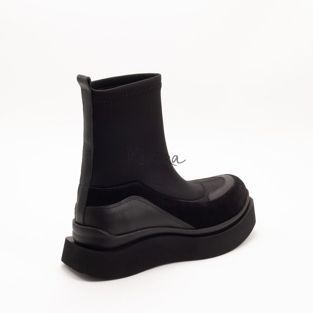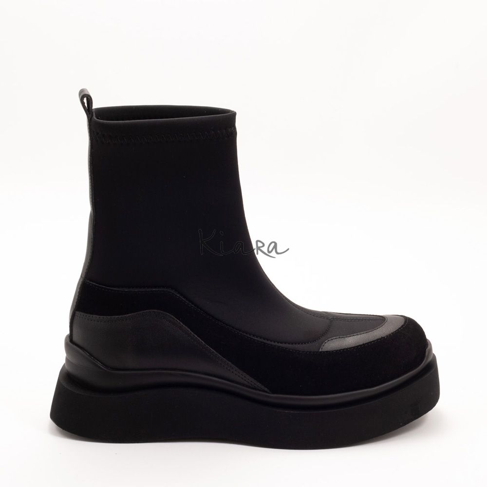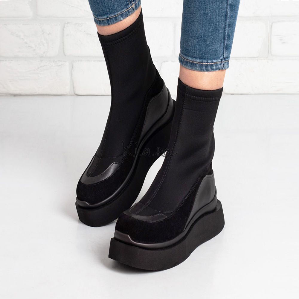 Ефектни дамски боти в черно, изработени от естествен велур и неопрен.