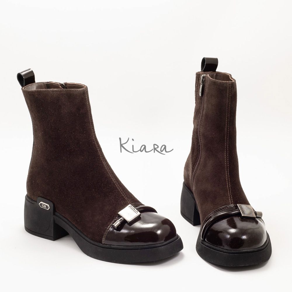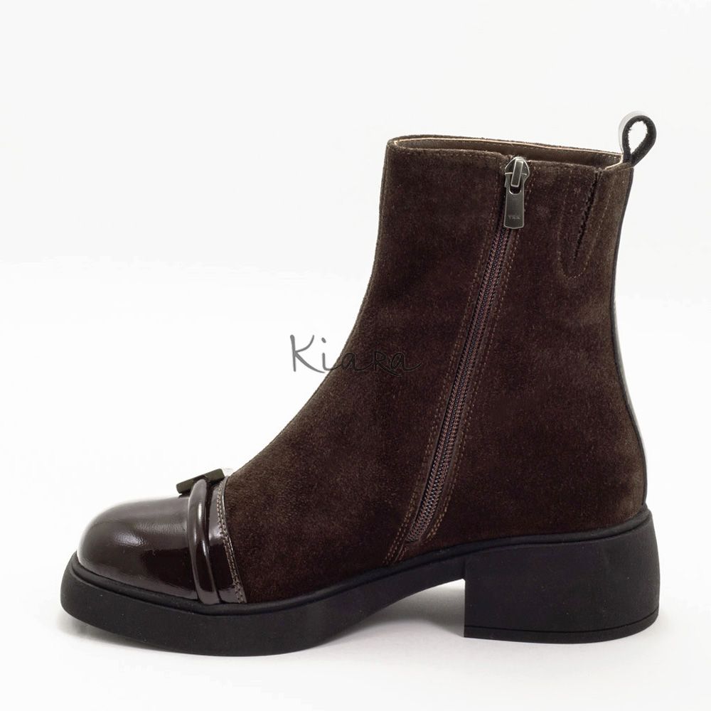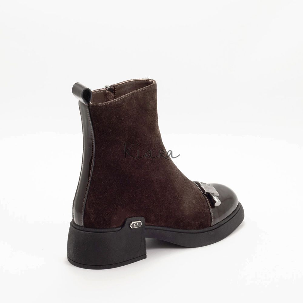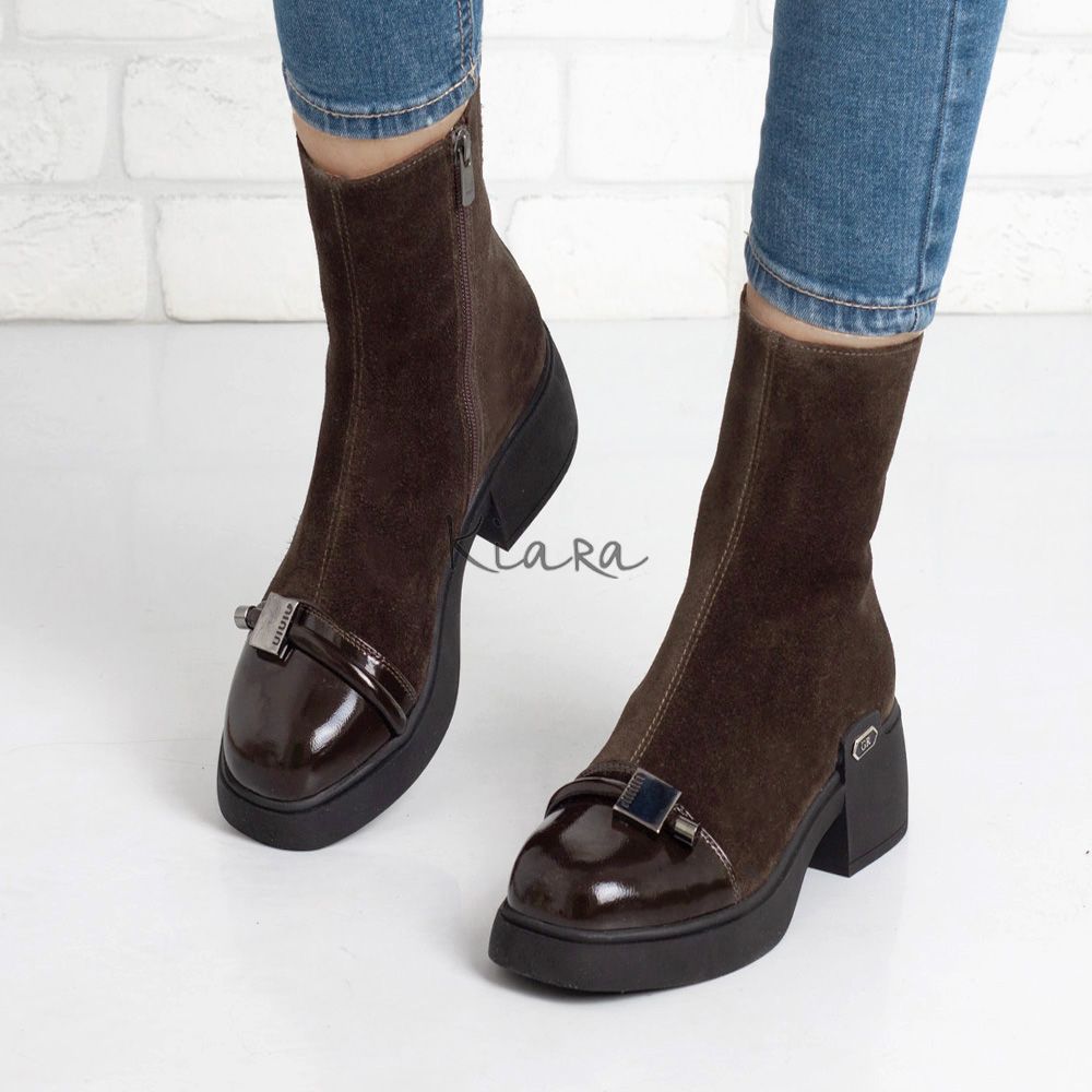 Тези ефектни боти с изчистен дизайн в кафяво ще придадат стил и комфорт на визията ви. Изработени от висококачествен естествен велур и естествен лак!