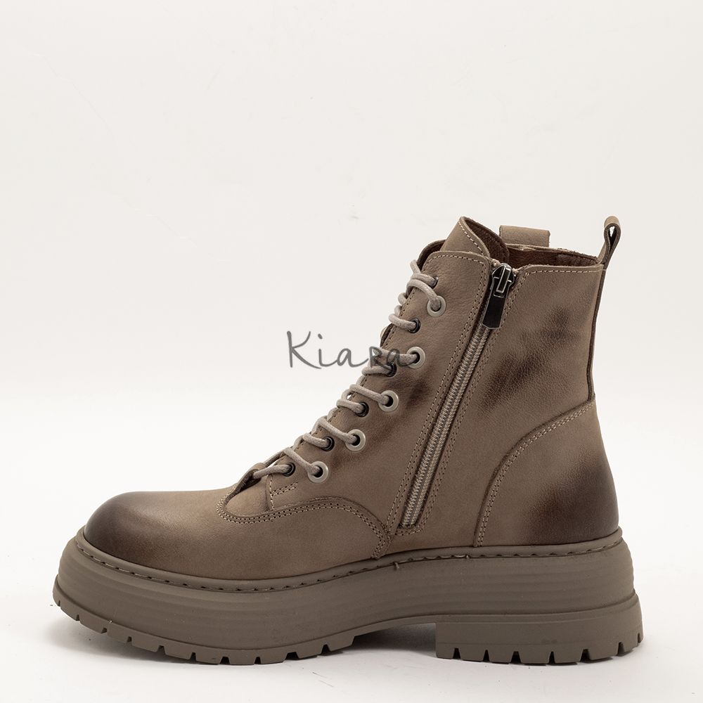 Тези ефектни боти с изчистен дизайн в тъмбно бежово ще придадат стил и комфорт на визията ви. Изработени от висококачествена естествена кожа.