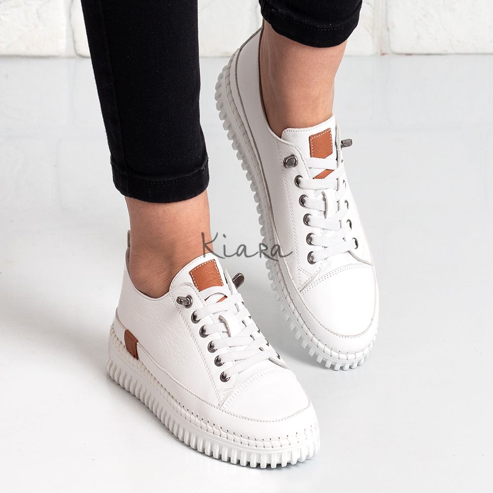 Комфортен модел дамски кецове, изработени от висококачествена естествена кожа.