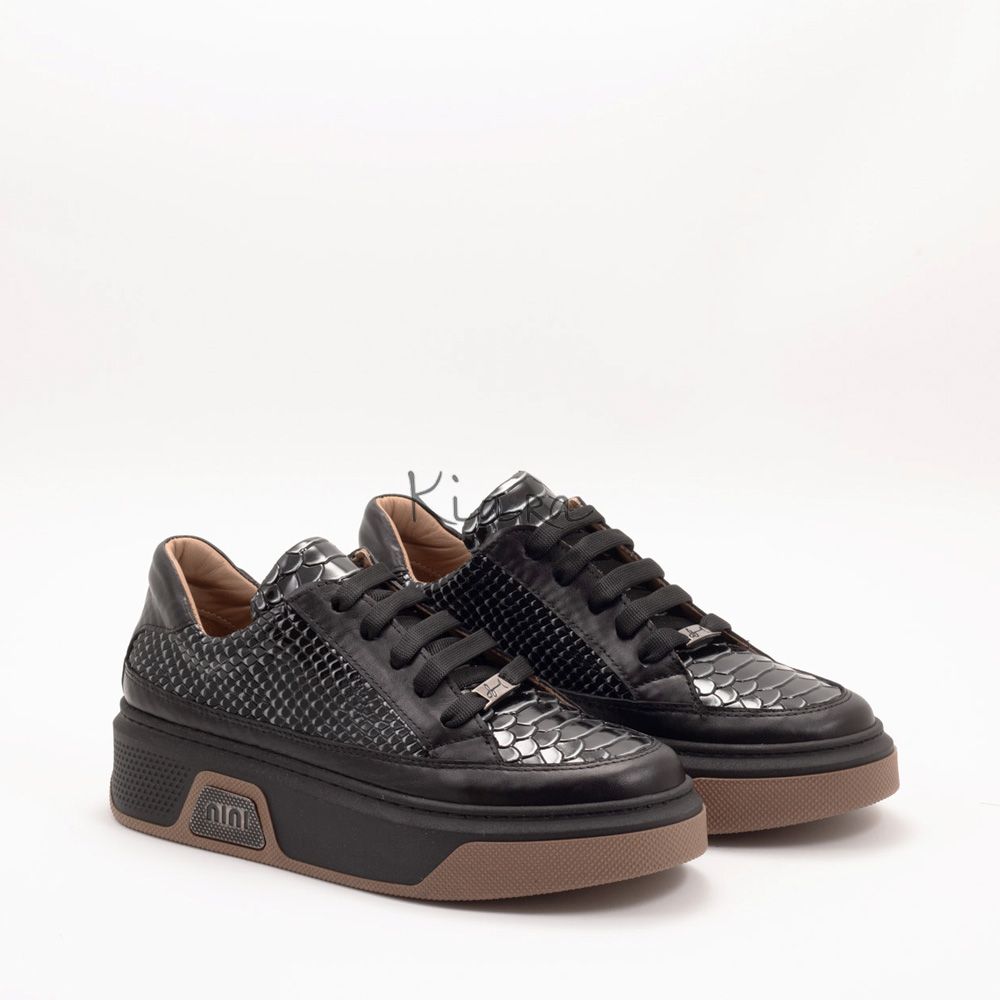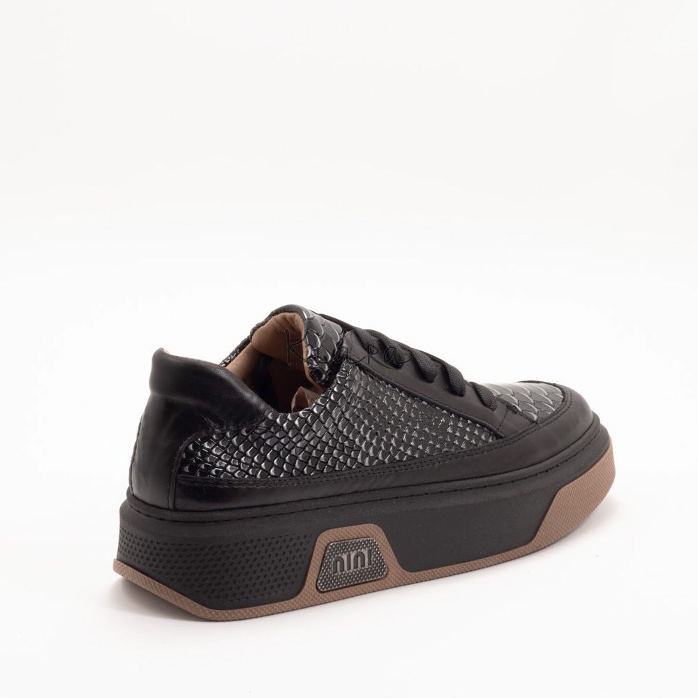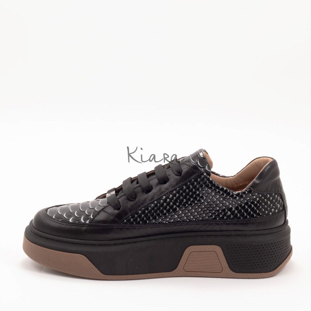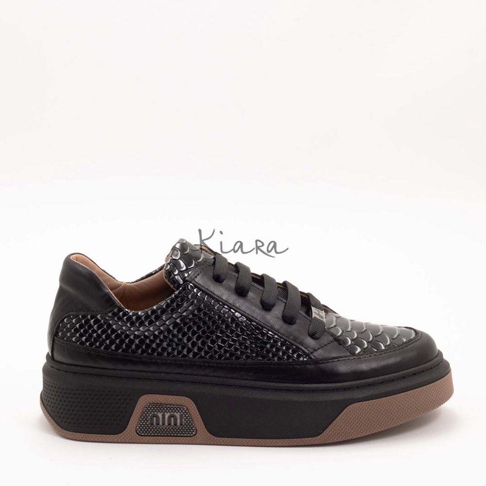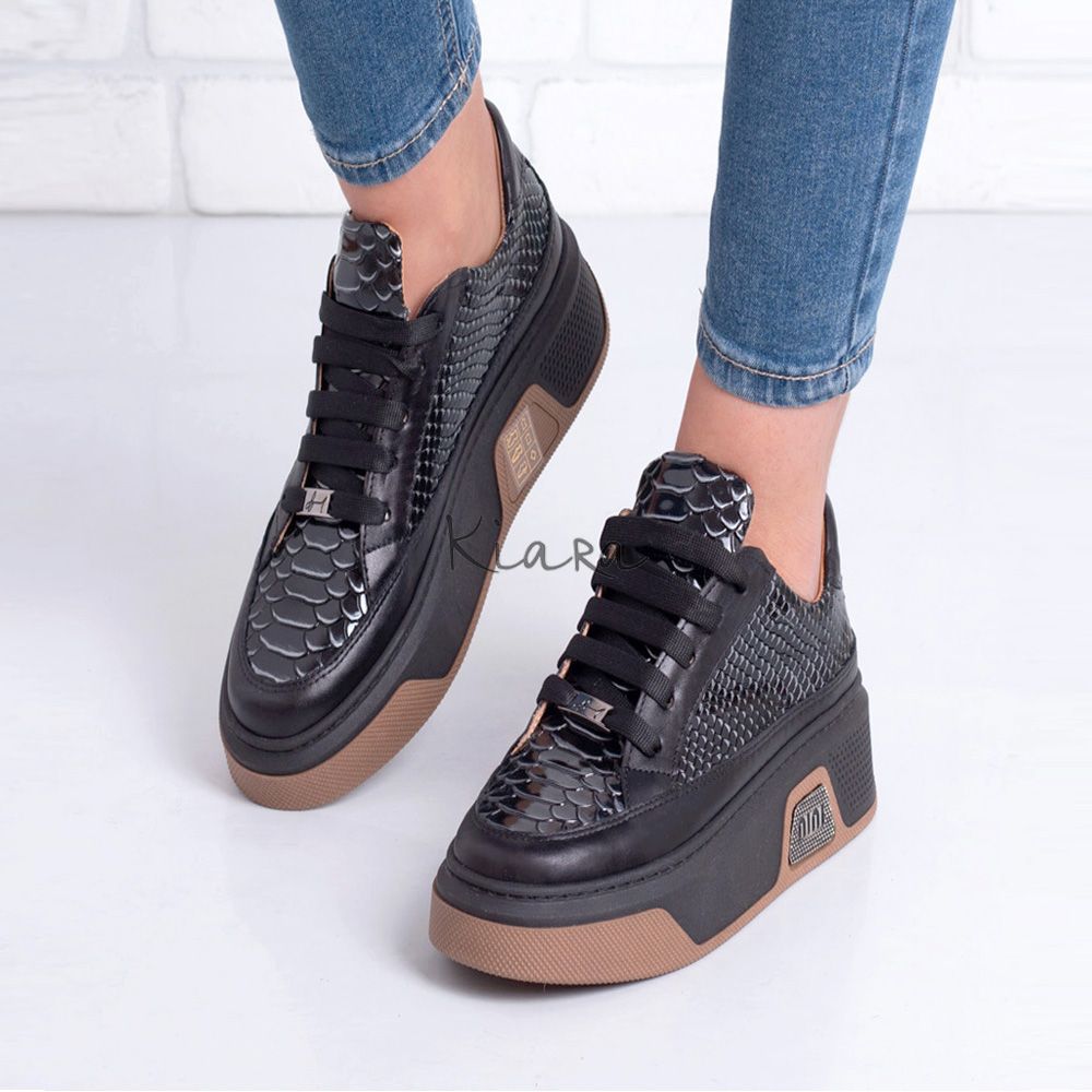 Комфортни и ефектни дамски кецове в черно и сребристо, изработени от естествена кожа и естествен лак.