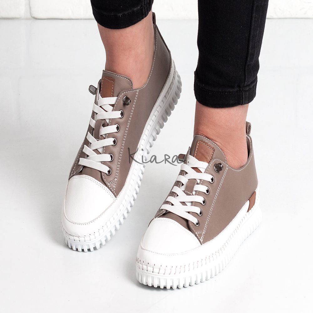 Дамски кецове в тъмно бежово и бяло