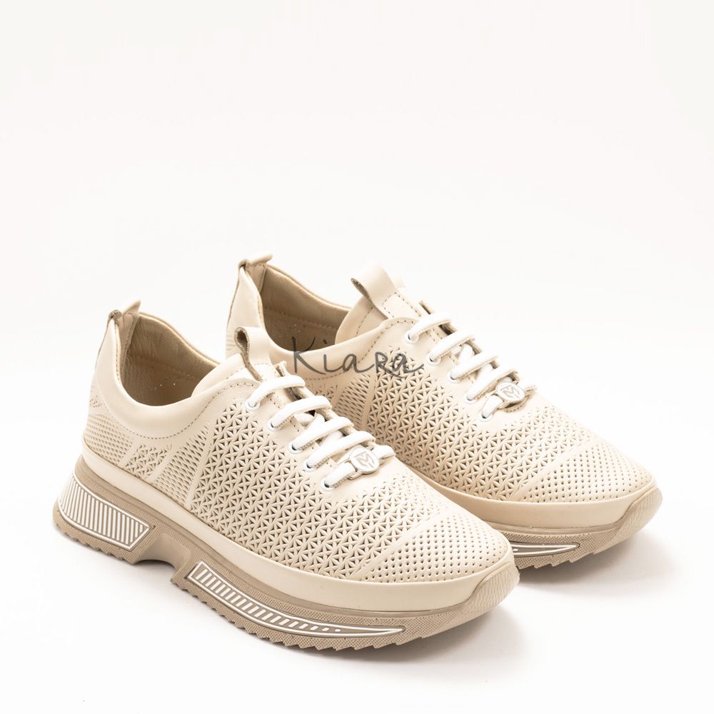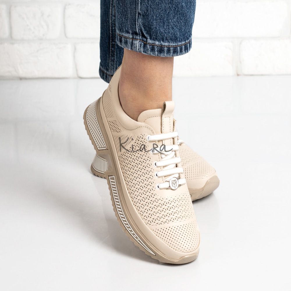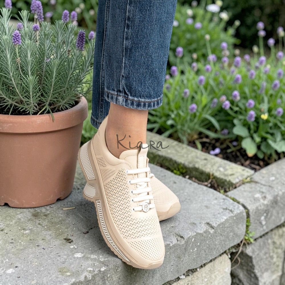 Елегантна визия и безупречен комфорт в едно. Тези бежови маратонки от естествена кожа впечатляват с фин перфориран дизайн, който придава стилен и модерен акцент.