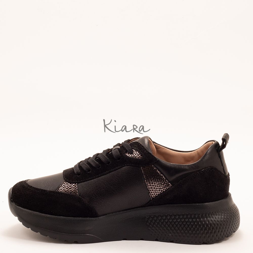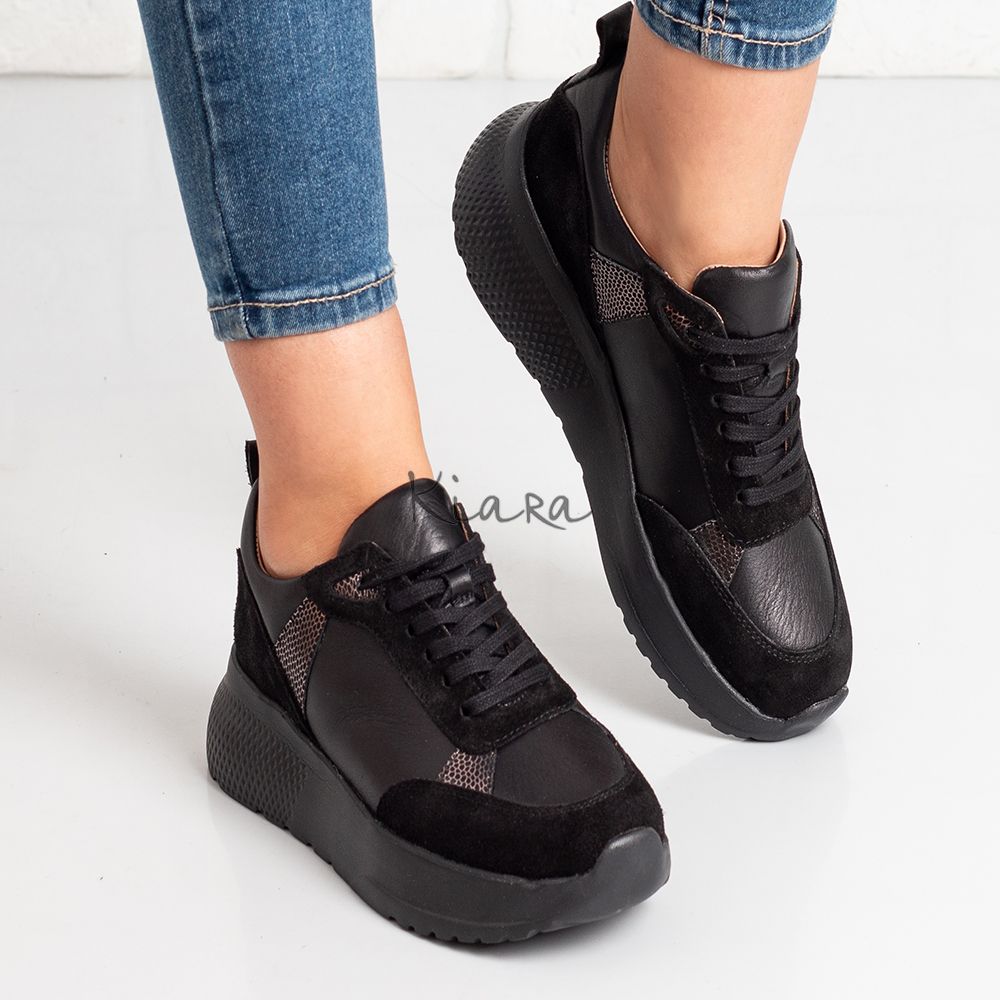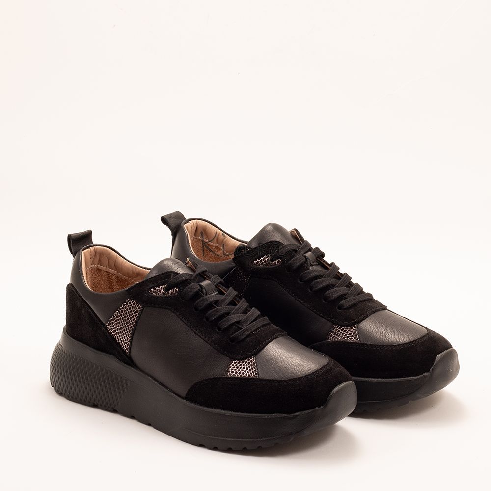 Ефектни и комфортни дамски маратонки в черно, изработени от естествена кожа.