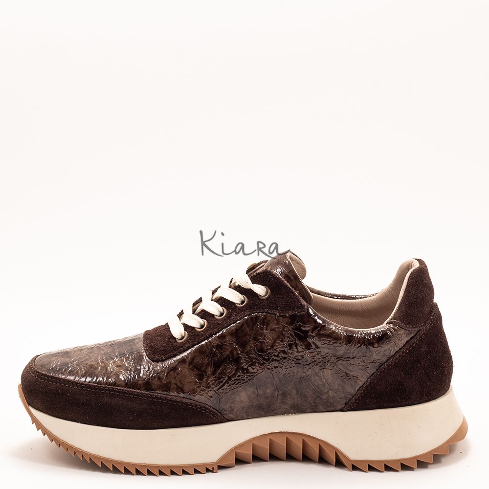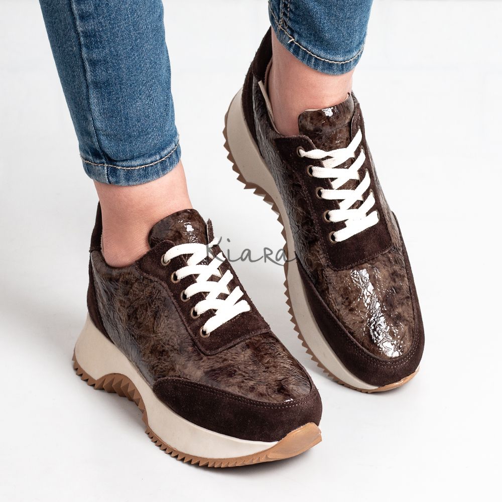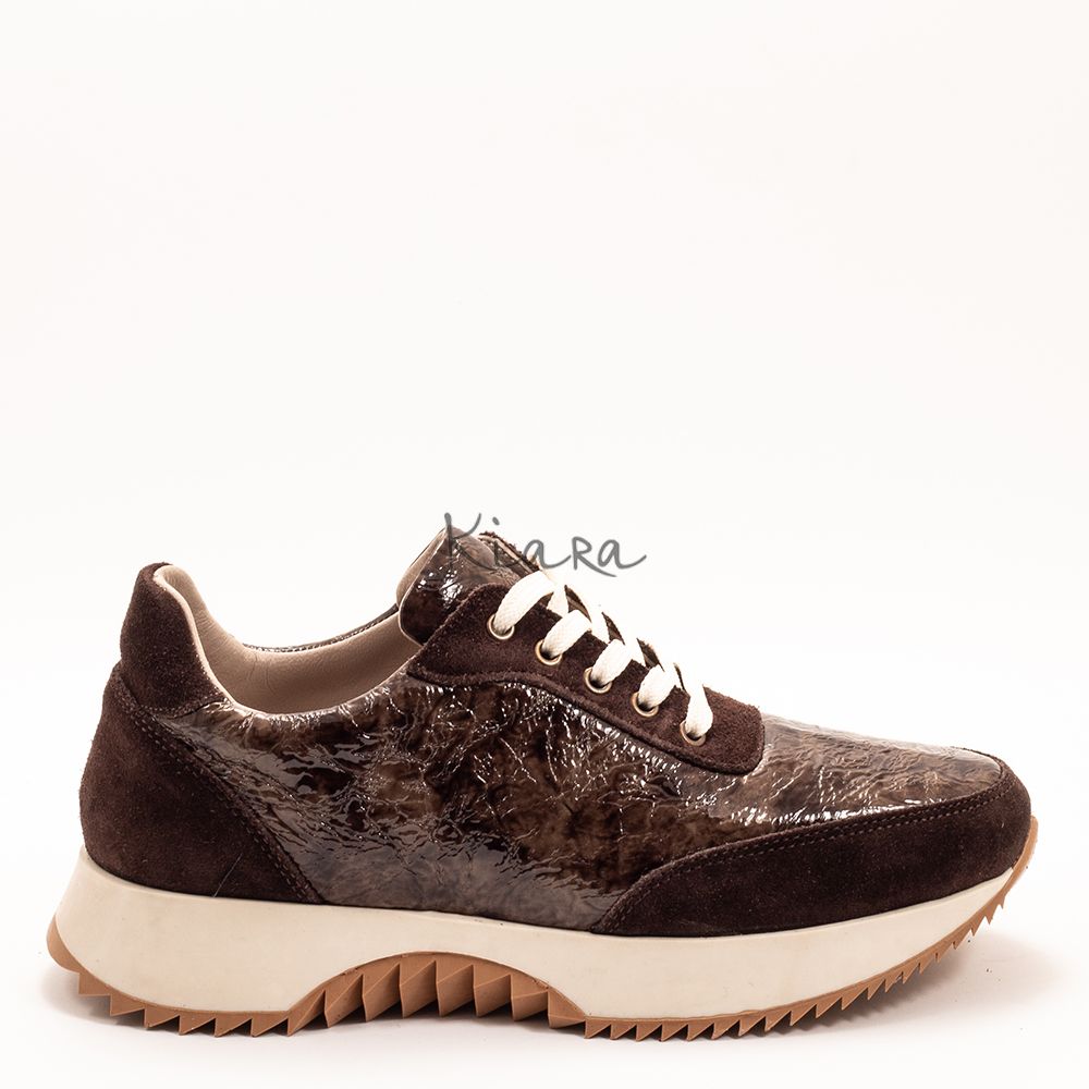 Модерен модел дамски маратонки, изработени от висококачествен естествен лак и естествен велур.