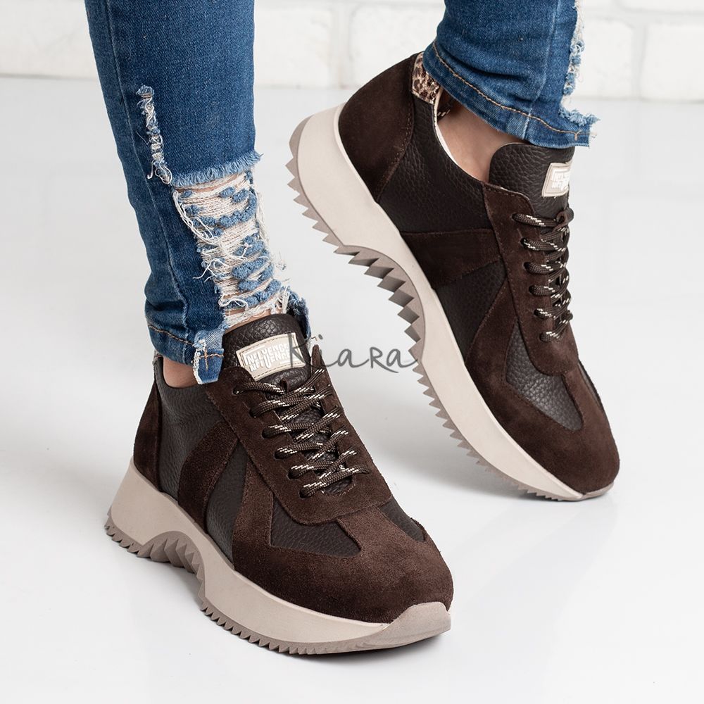 Дамски маратонки от естествена кожа и естествен велур в стилна комбинация и леопардов принт на петата.