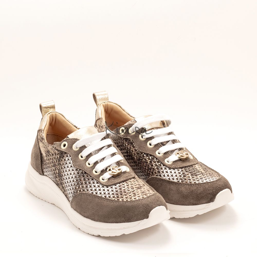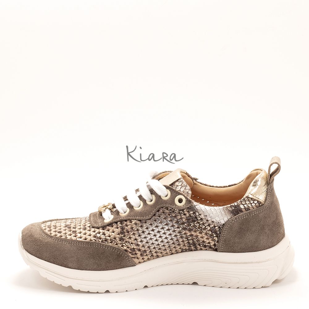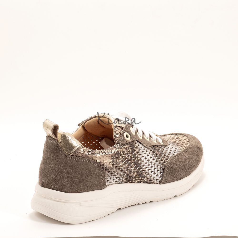 Дамски маратонки в тъмно бежово и змийски принт