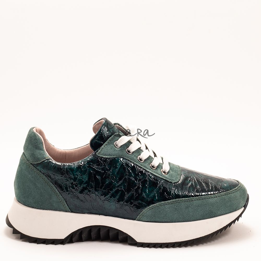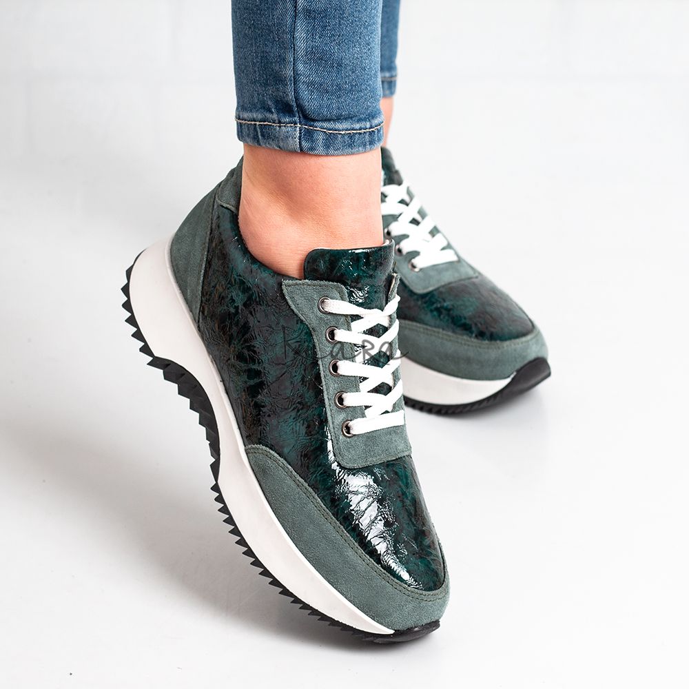 Модерен модел дамски маратонки, изработени от висококачествен естествен лак и естествен велур.
