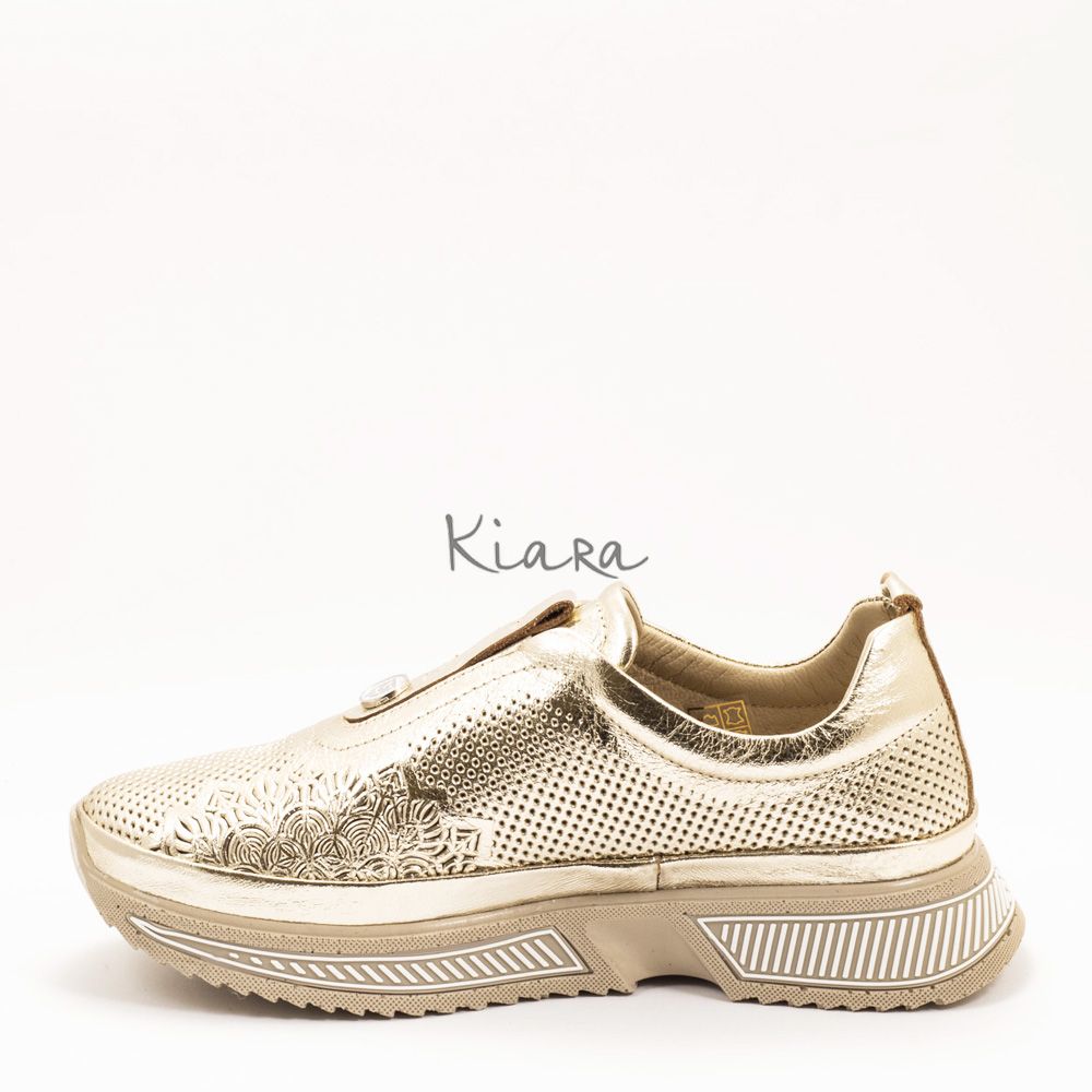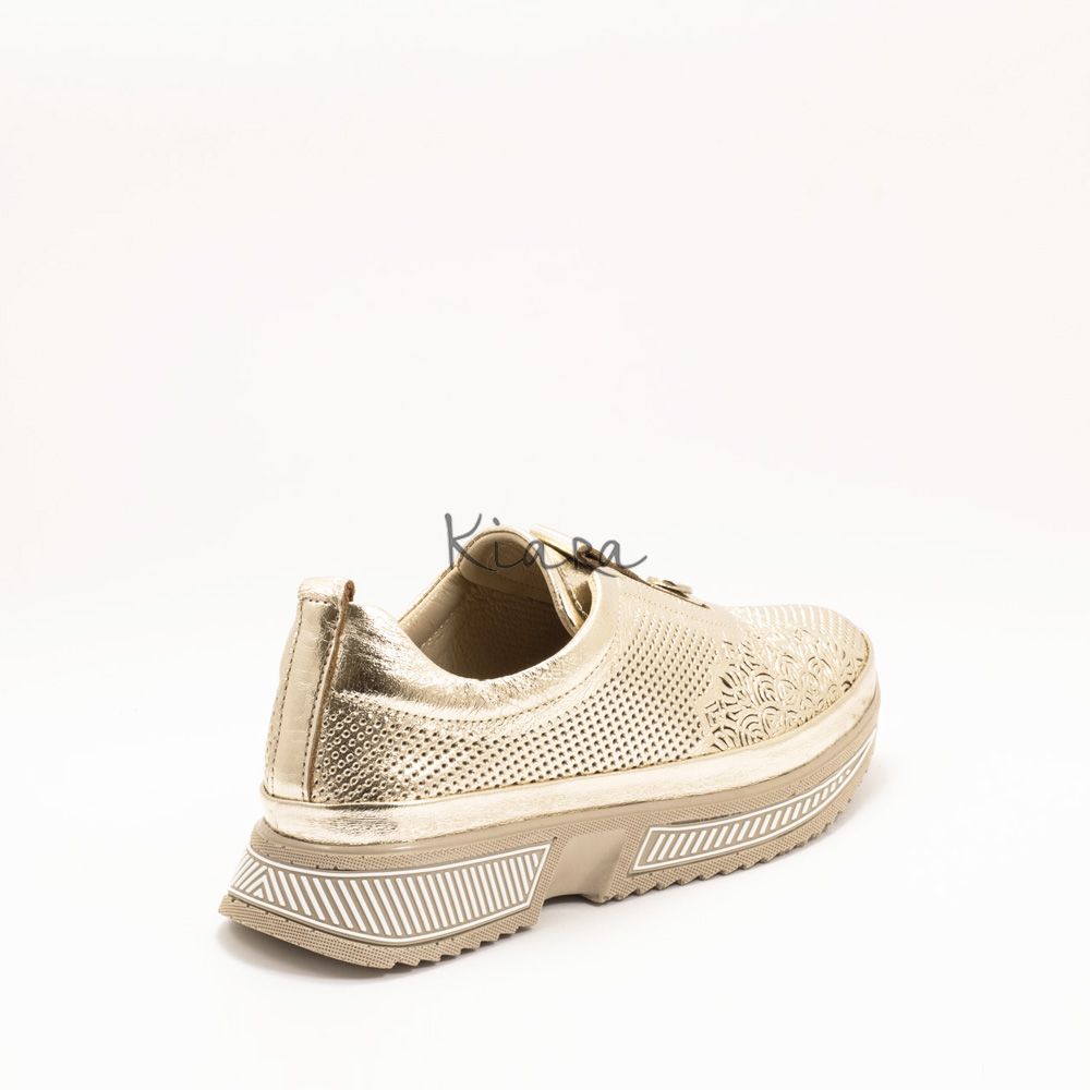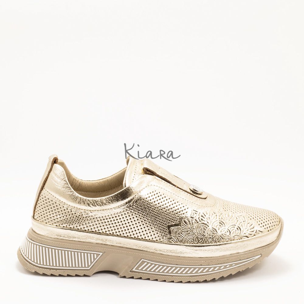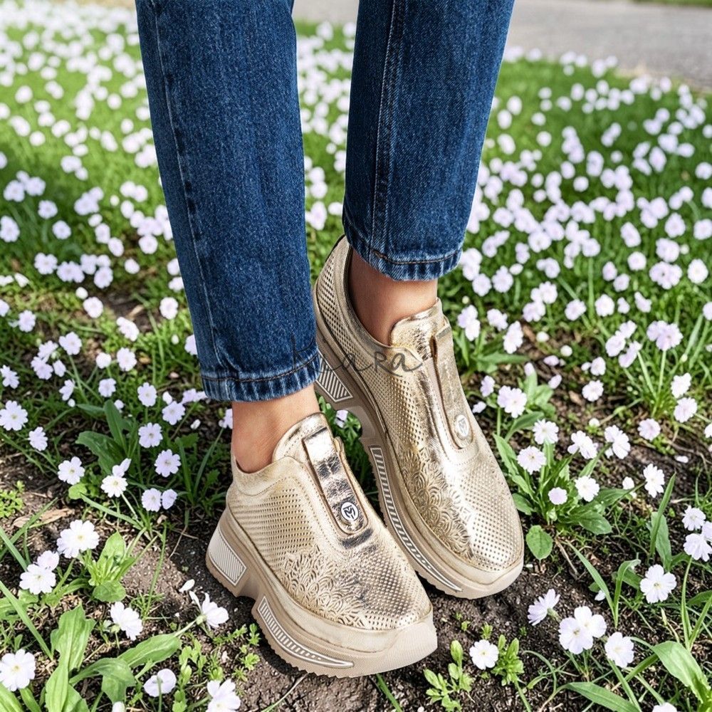 Елегантна визия и безупречен комфорт в едно. Тези златни маратонки от естествена кожа впечатляват с фин перфориран дизайн, който придава стилен и модерен акцент.