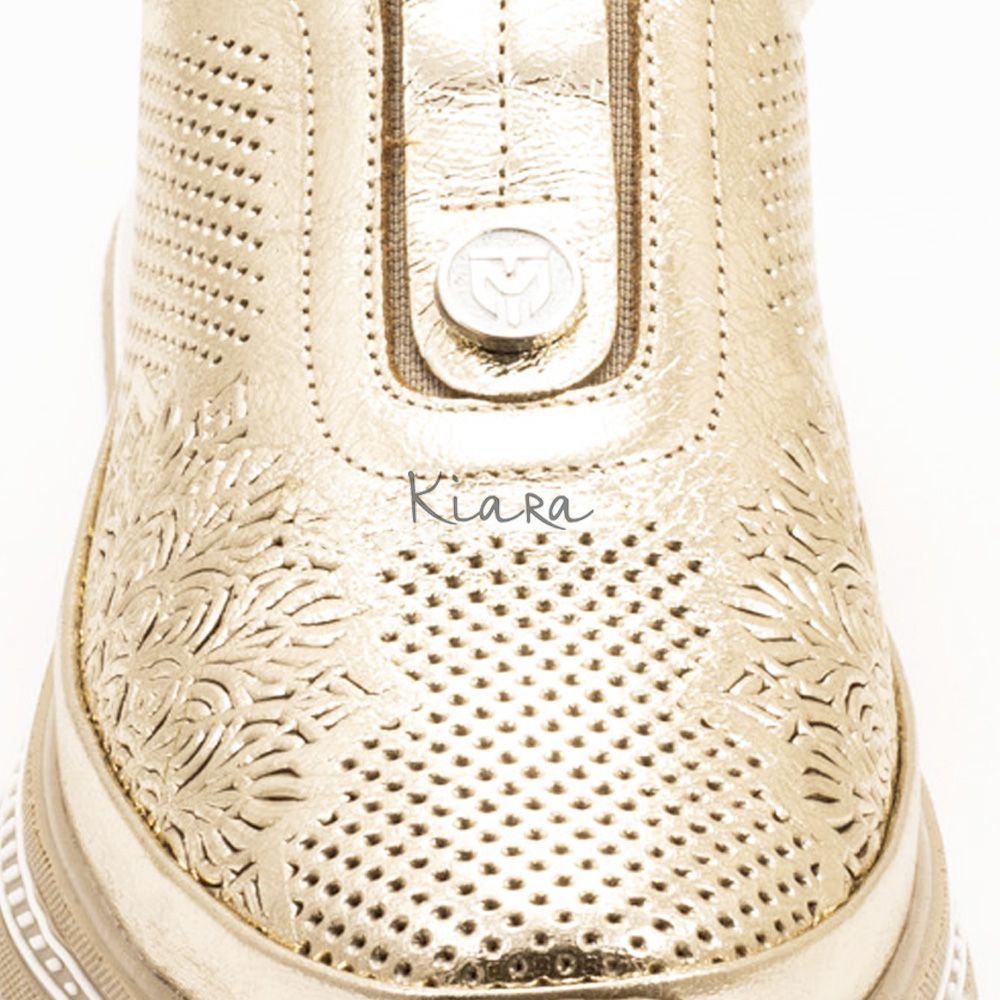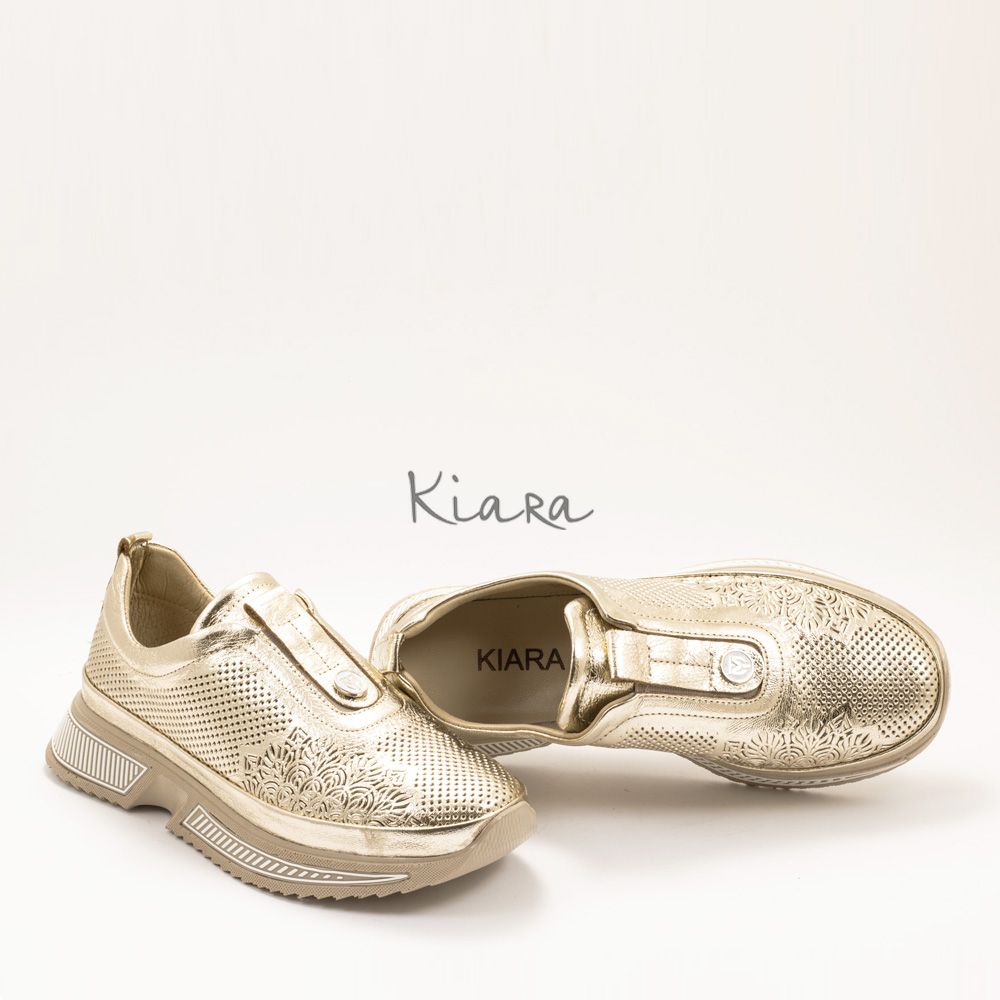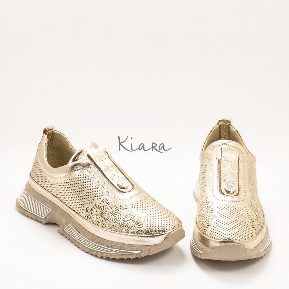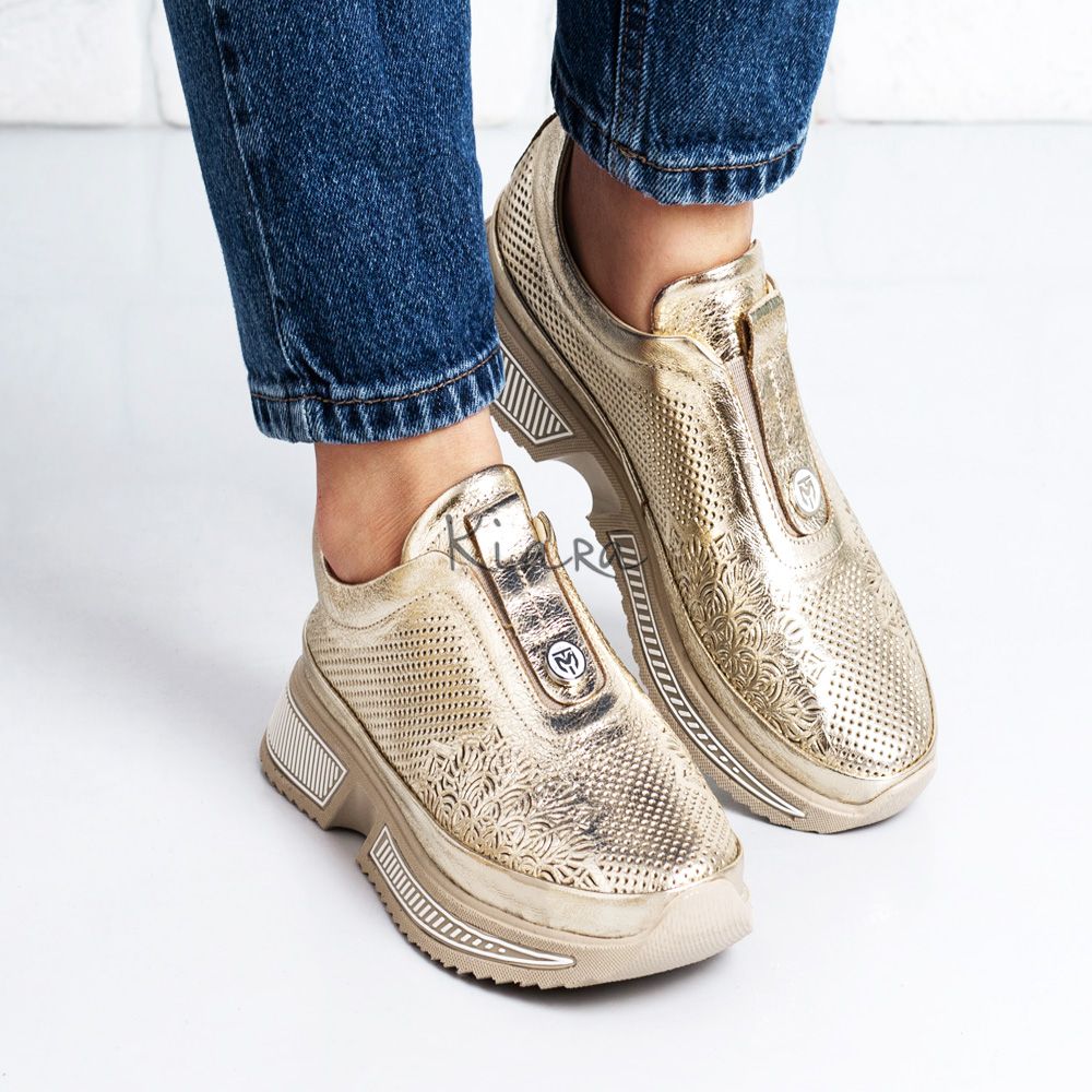 Елегантна визия и безупречен комфорт в едно. Тези златни маратонки от естествена кожа впечатляват с фин перфориран дизайн, който придава стилен и модерен акцент.