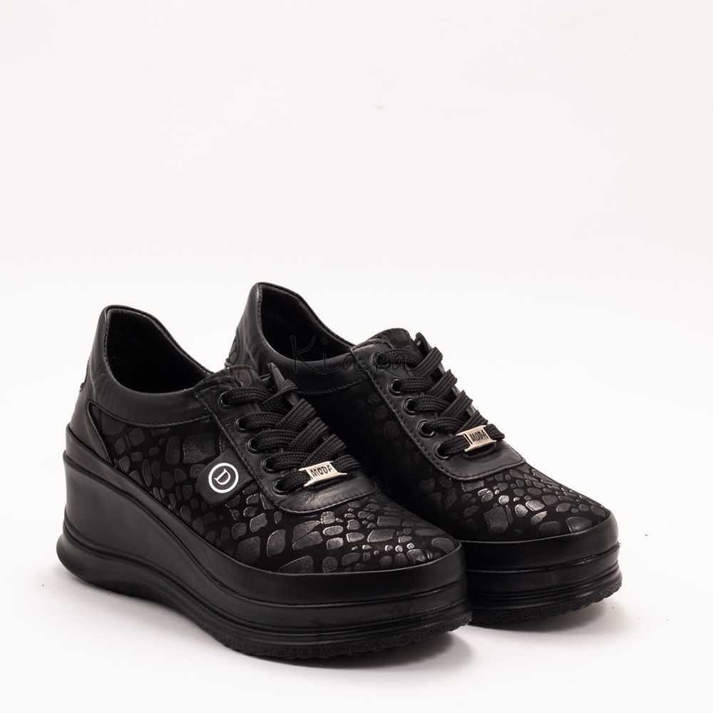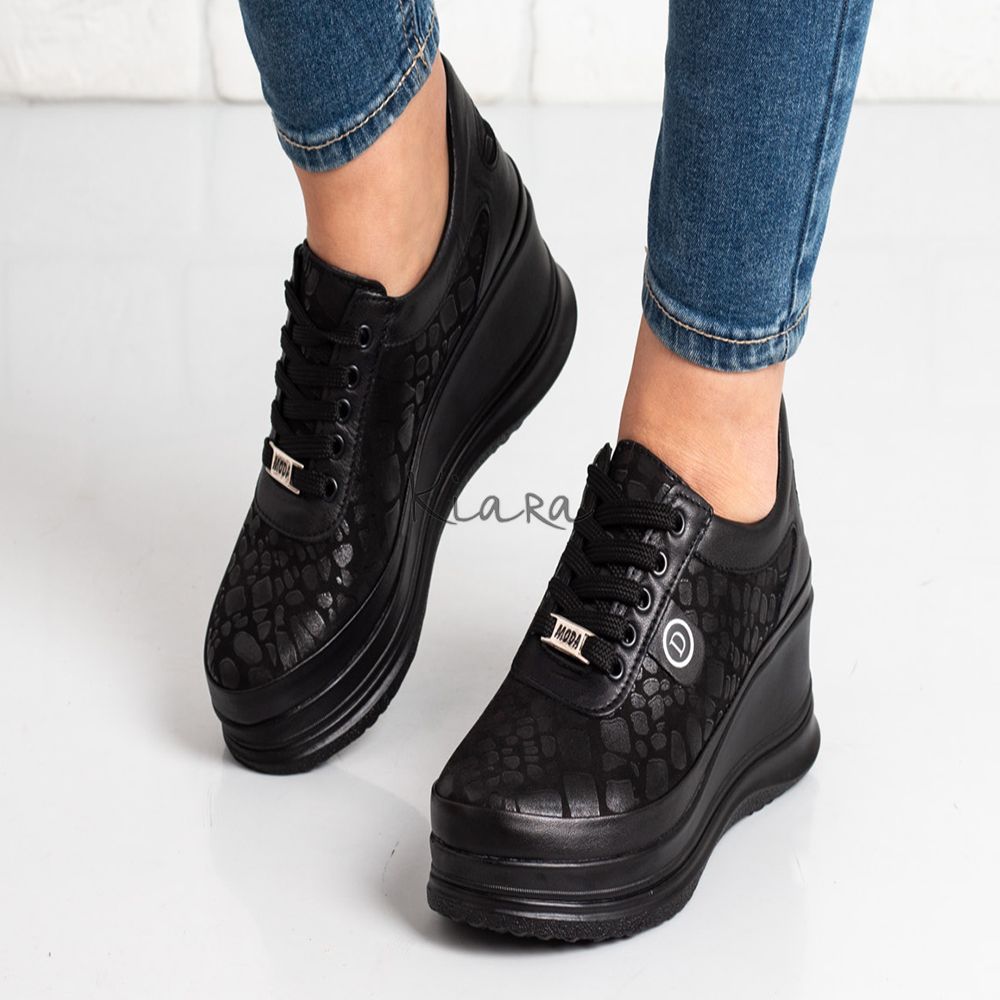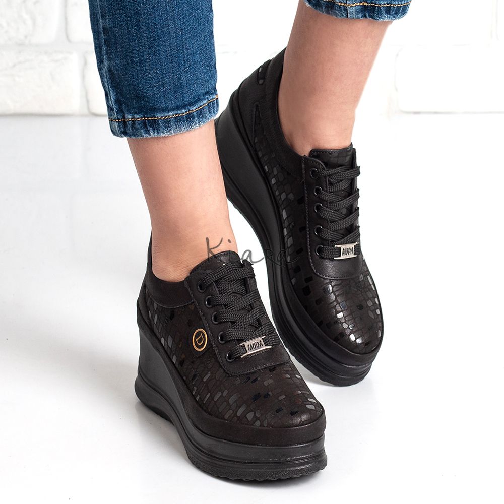 Комфортни дамски обувки на платформа в черно, изработени от естествена кожа и естествена кожа!