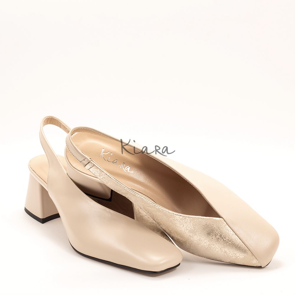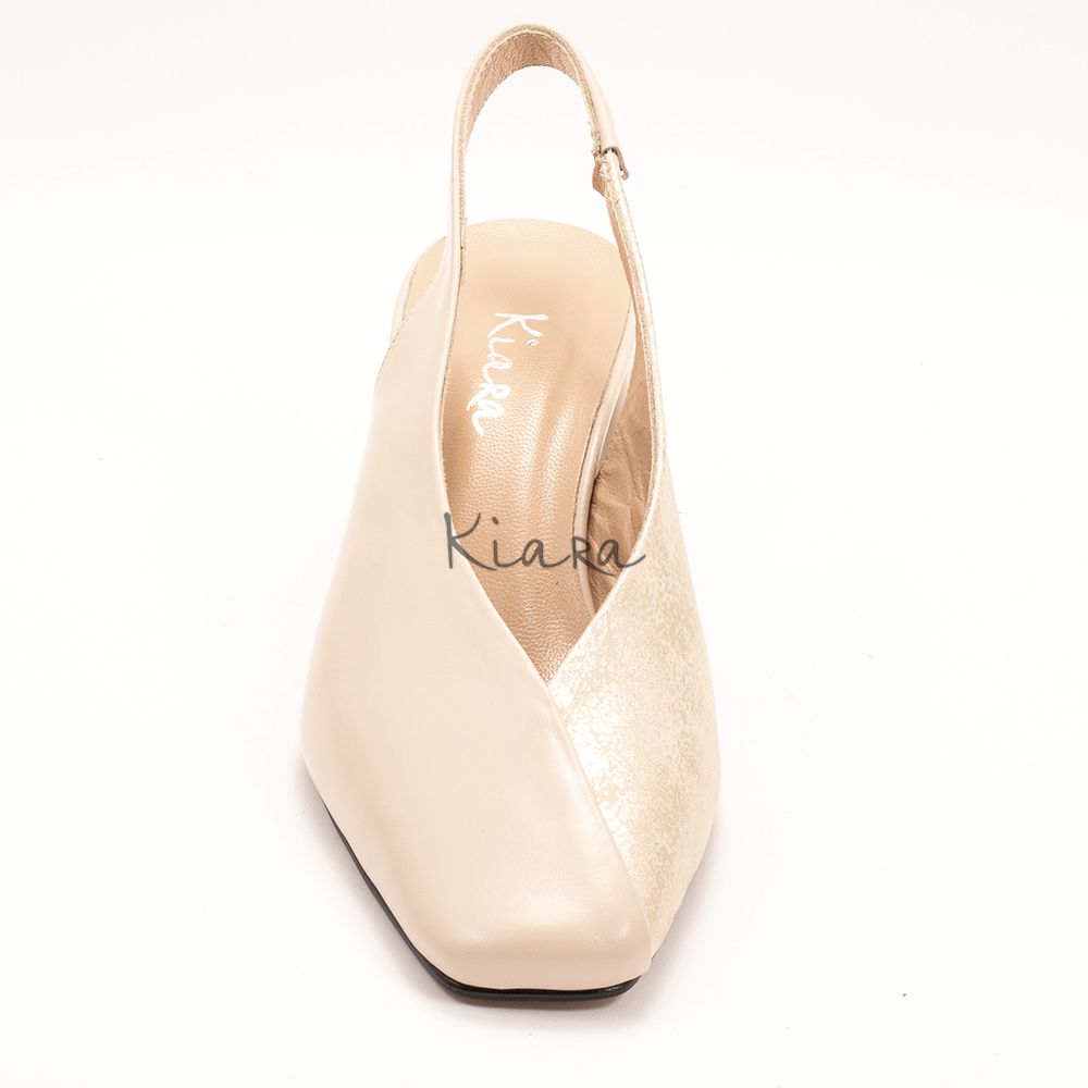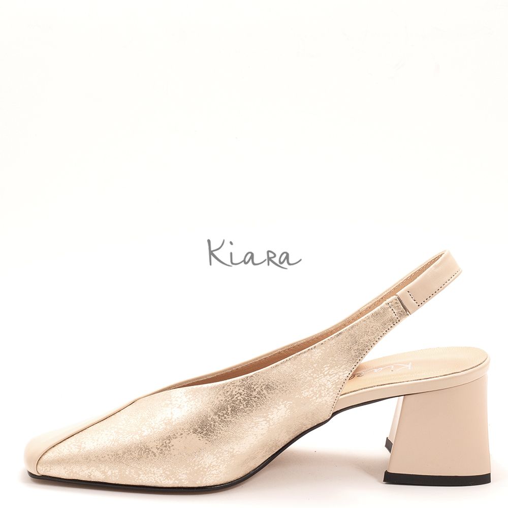 Дамски обувки на ток в бежово и златисто