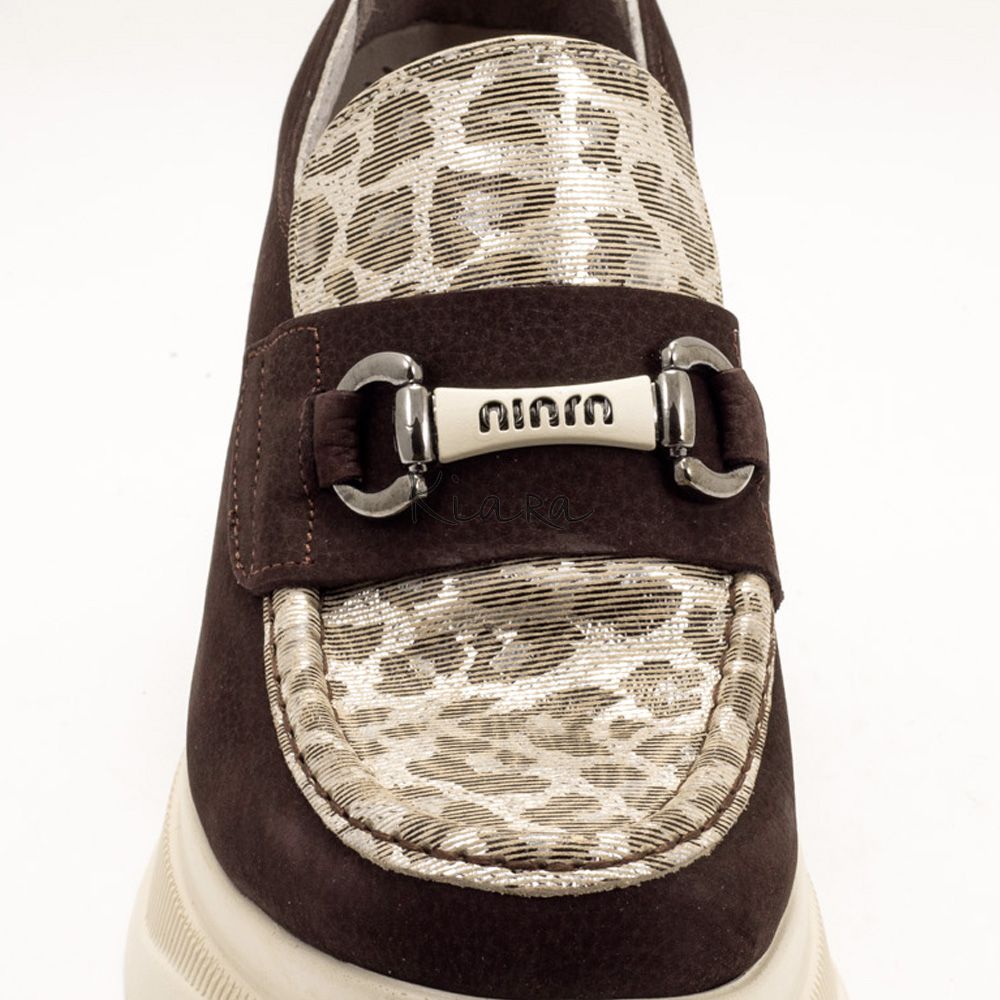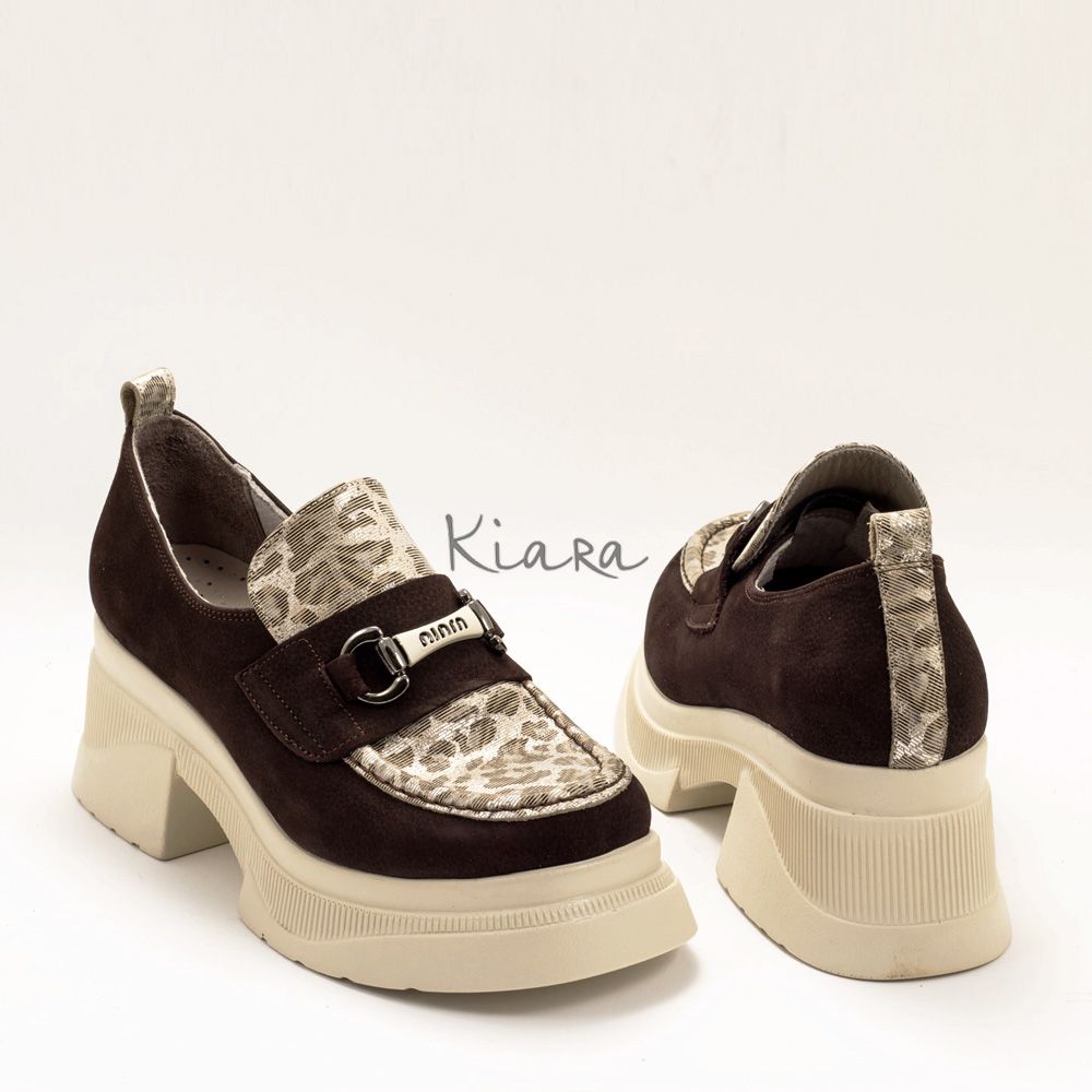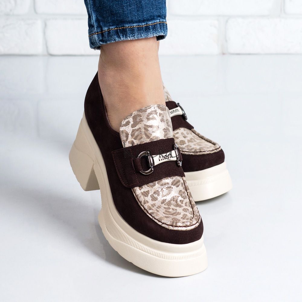 Дамски обувки в кафяво и златисто
