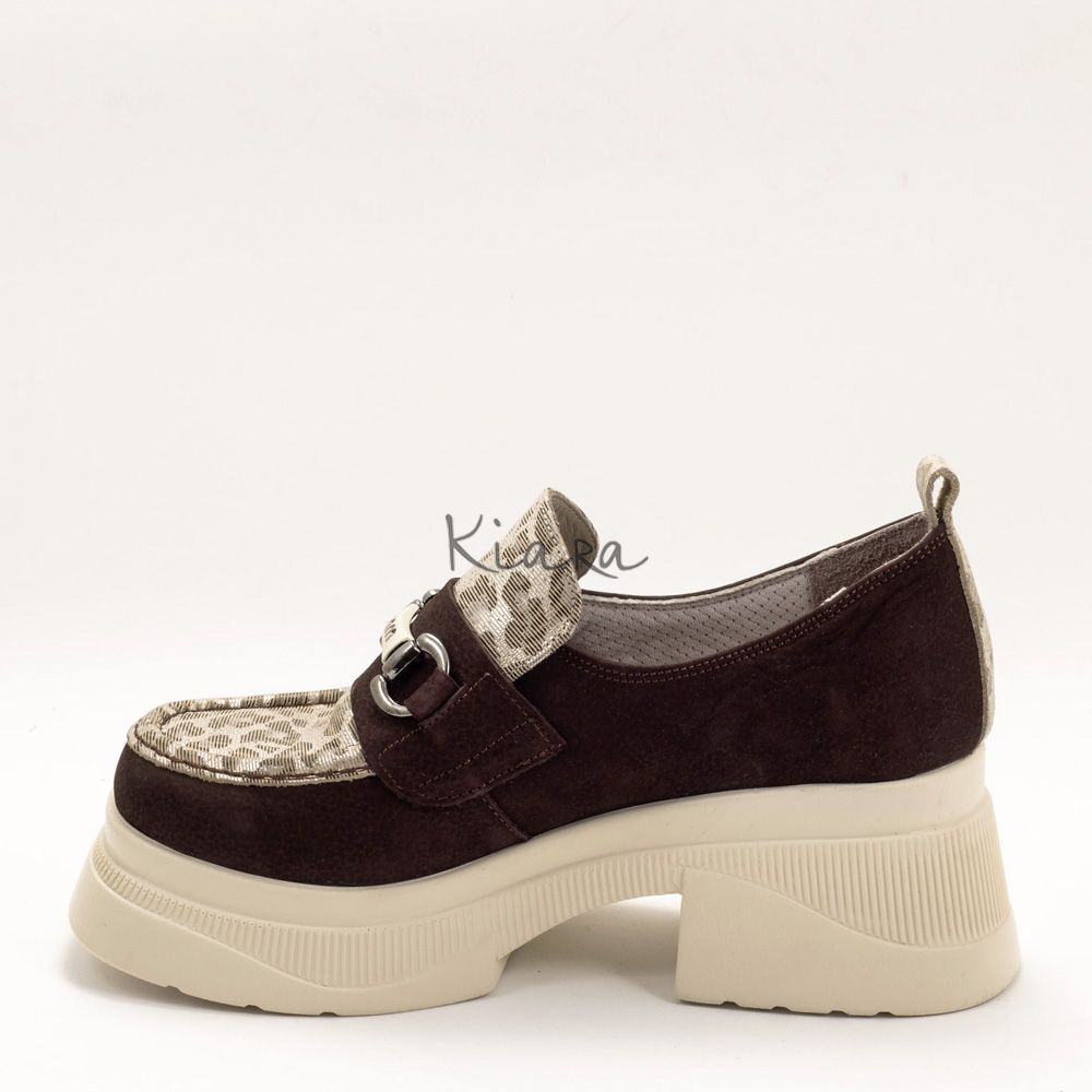 Изискан модел обувки, изработени от висококачествена естествена кожа. Фините детайли и металният акцент отпред придават стилна индивидуалност и подчертават модерната линия на дизайна.