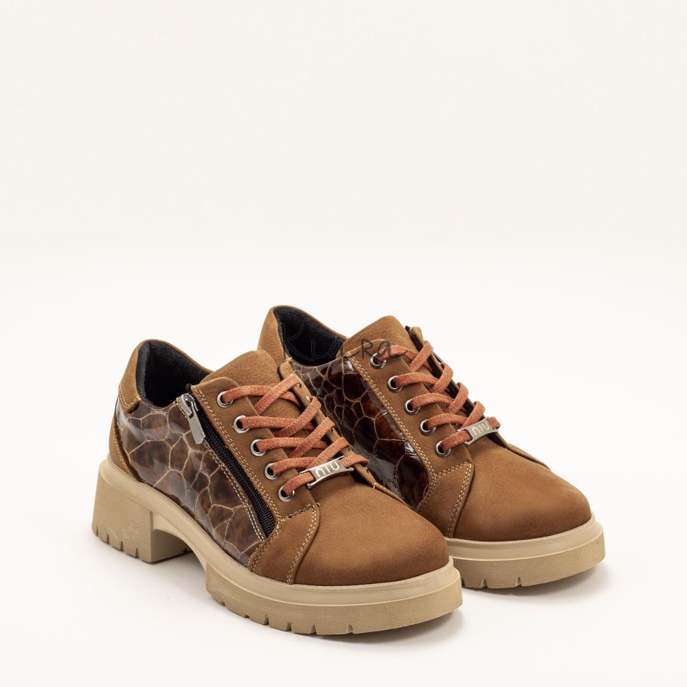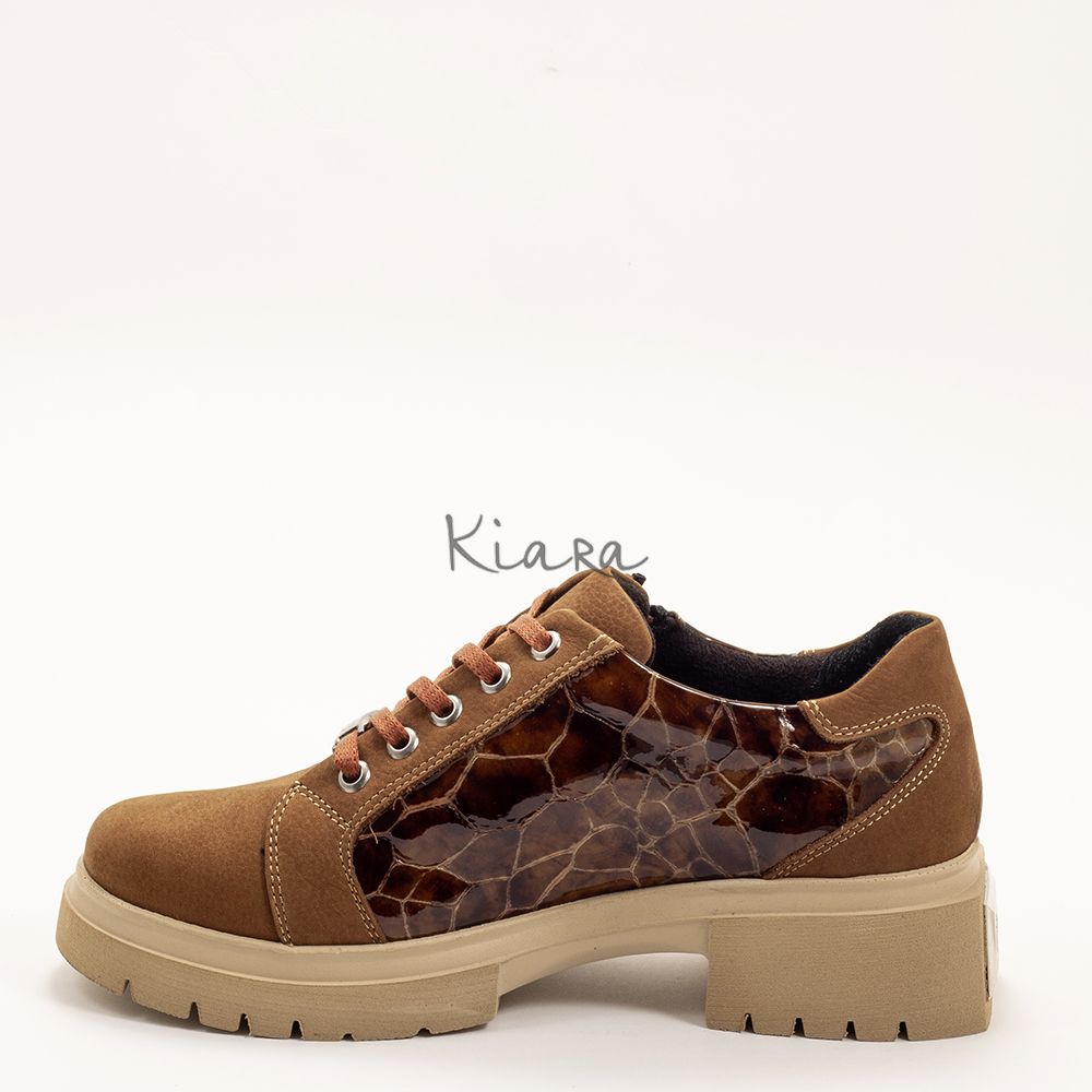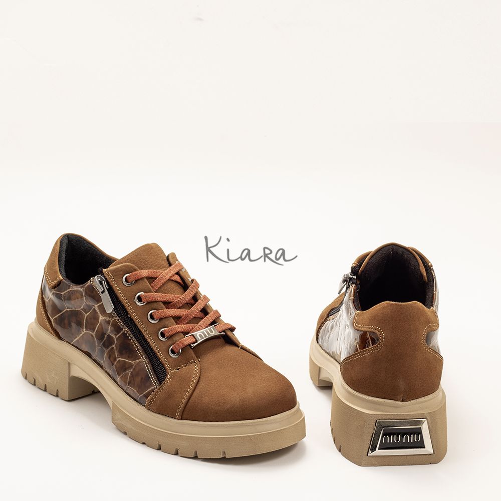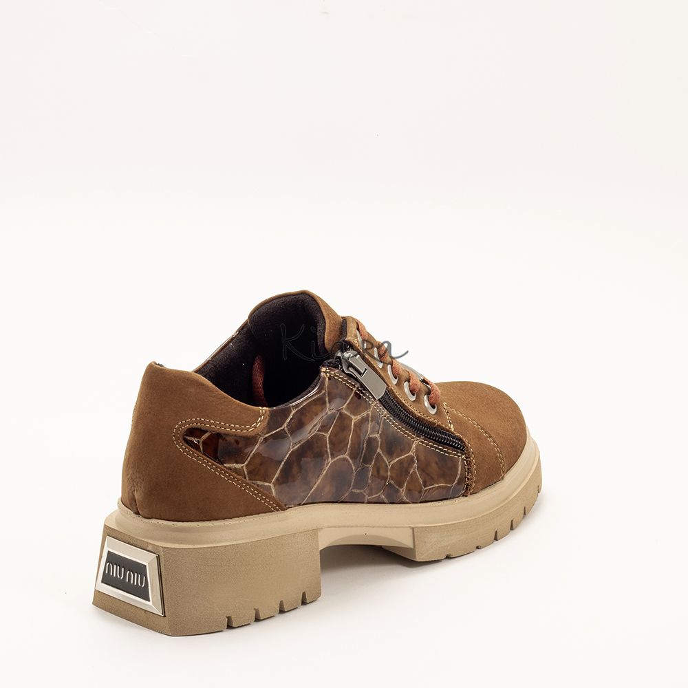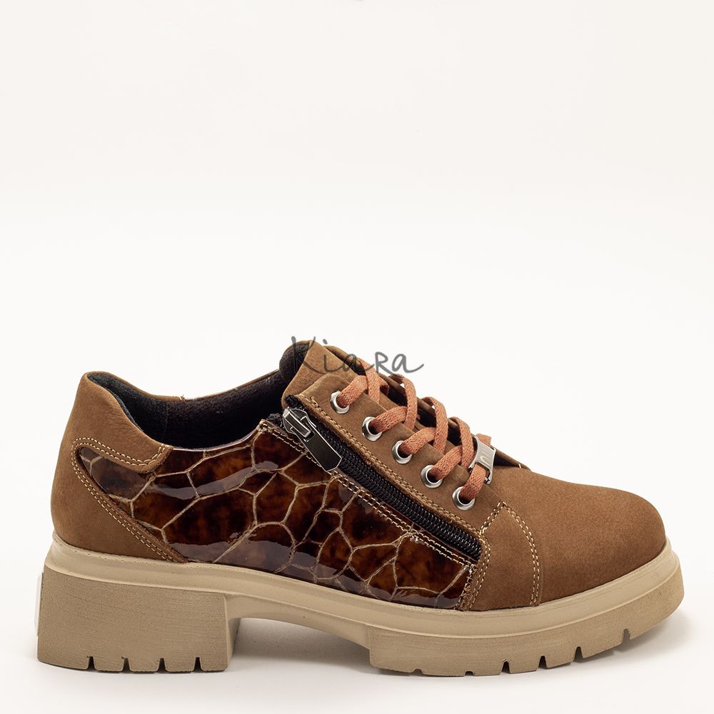 Комфортни дамски обувки в камел с цип, изработени от естествена кожа и естествен лак.